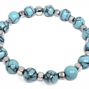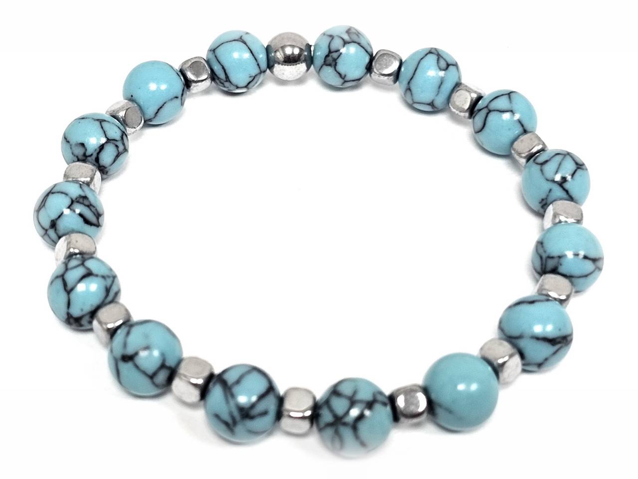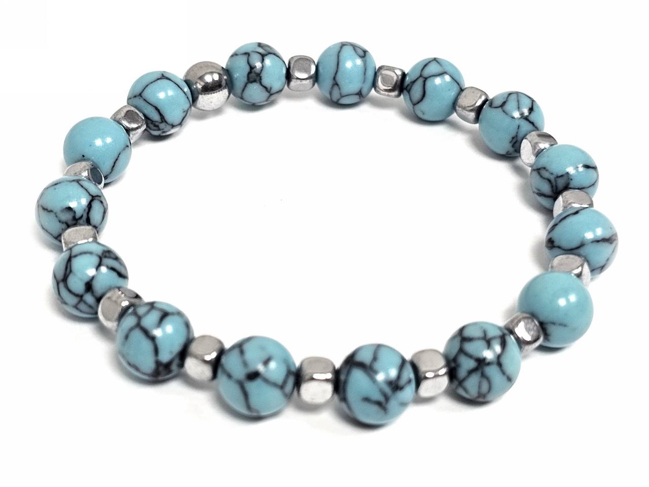 Βραχιόλι Πέτρα λάστιχο, 8# τυρκουάζ, και στοιχεία από αιματίτη σε χρώμα Ασημί