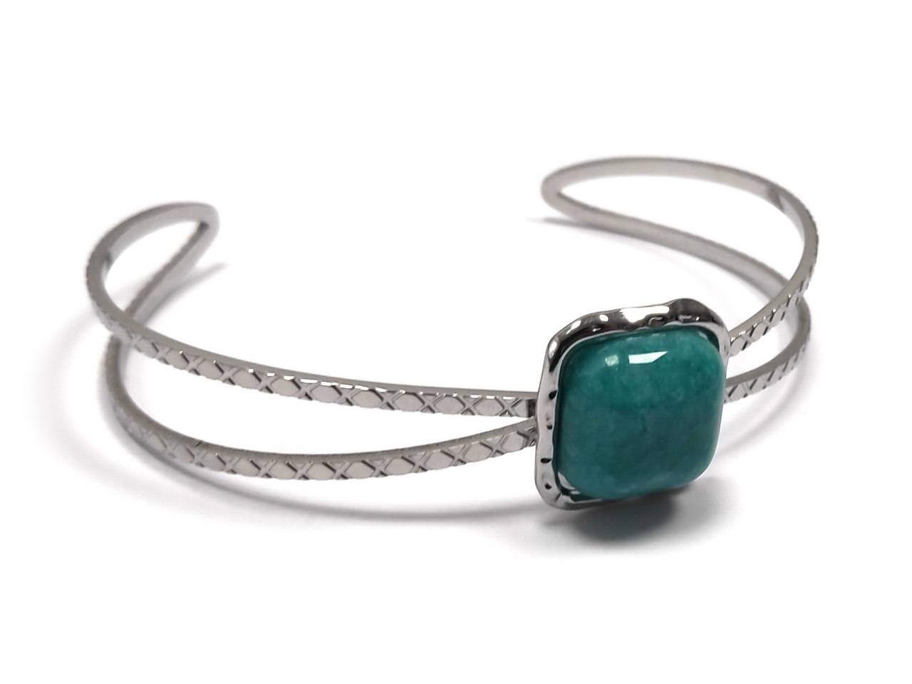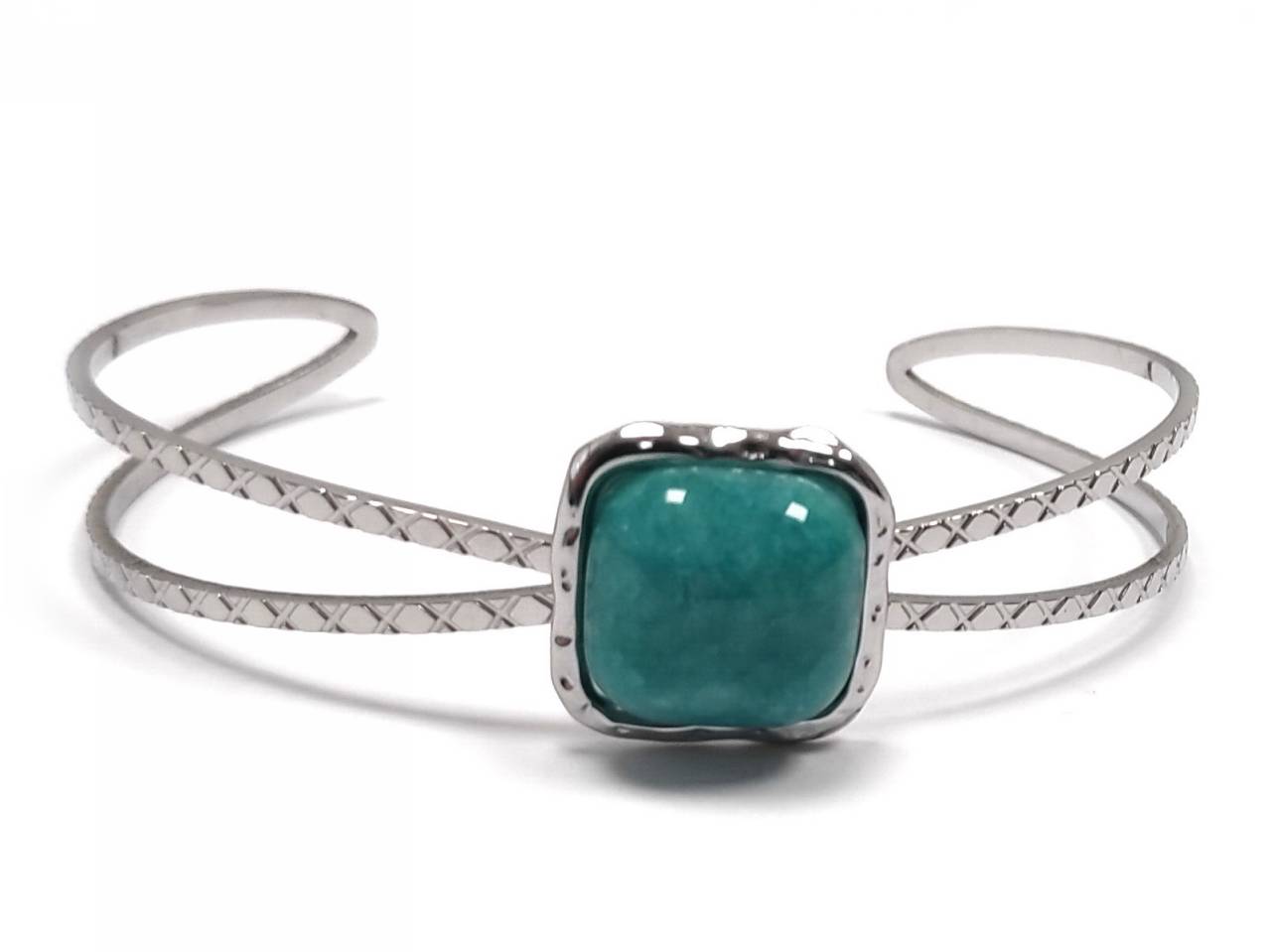 Βραχιόλι Πέτρα 316L, σταθερό με τυρκουάζ σε χρώμα Ασημί
