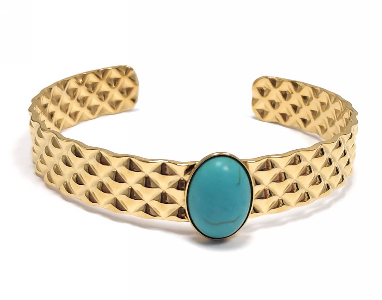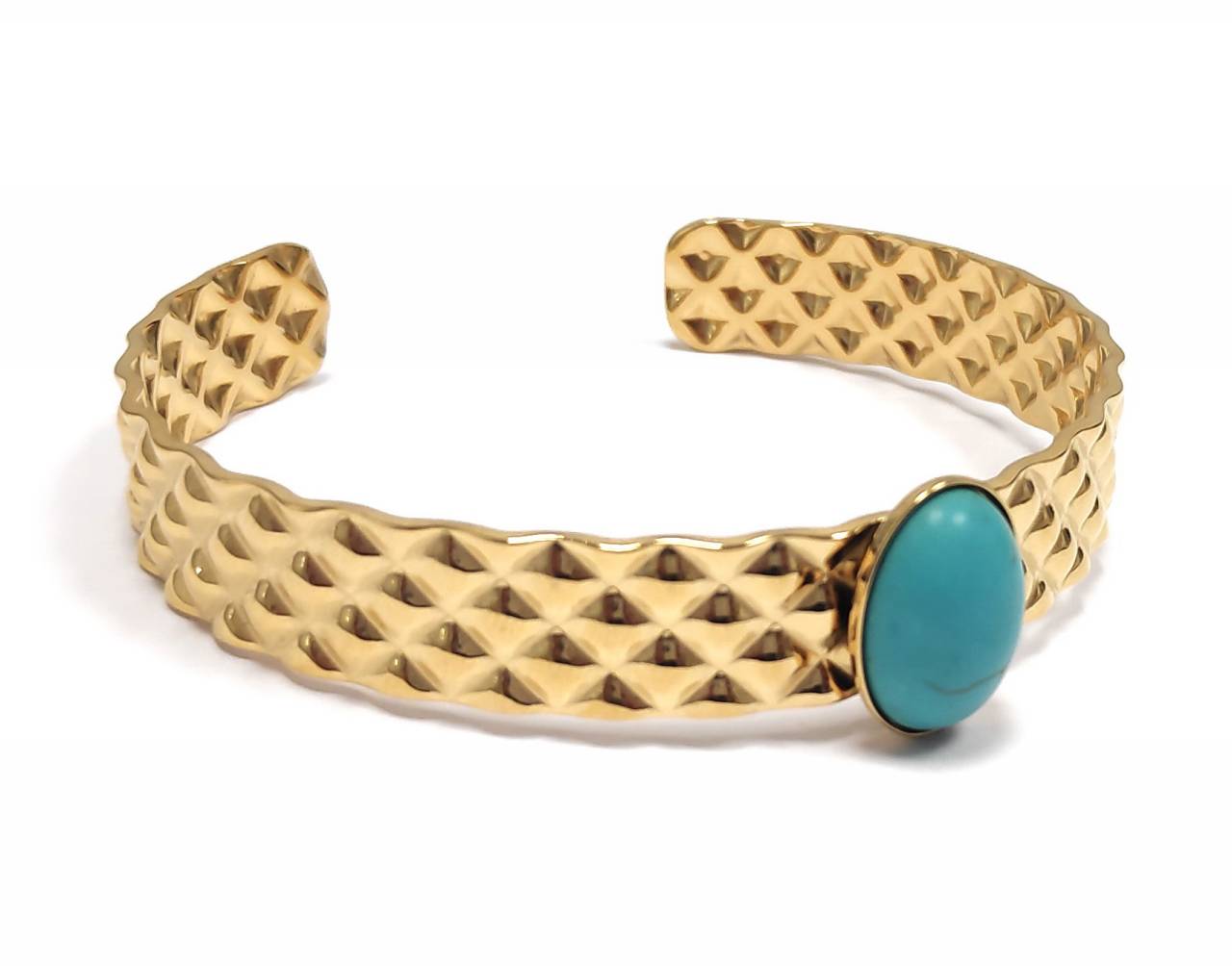 Βραχιόλι Πέτρα 316L, σταθερό με τυρκουάζ σε χρώμα Χρυσαφί