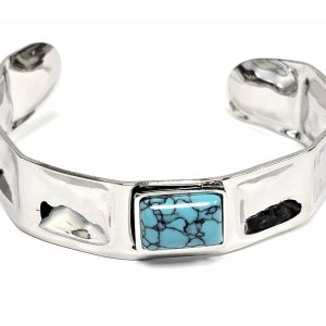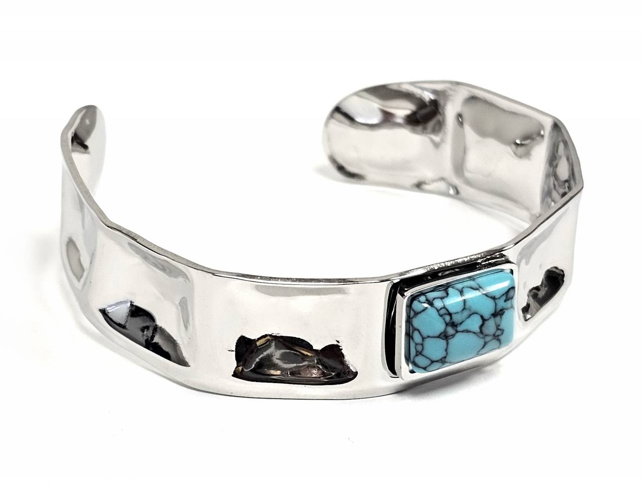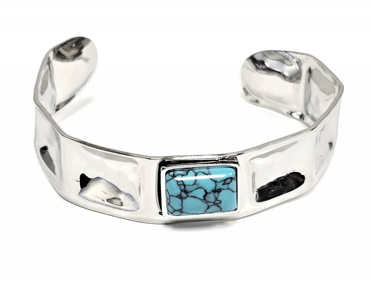 Βραχιόλι Πέτρα ατσάλι 316L, σταθερό με τυρκουάζ σε χρώμα Ασημί