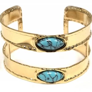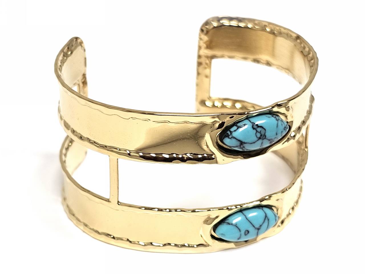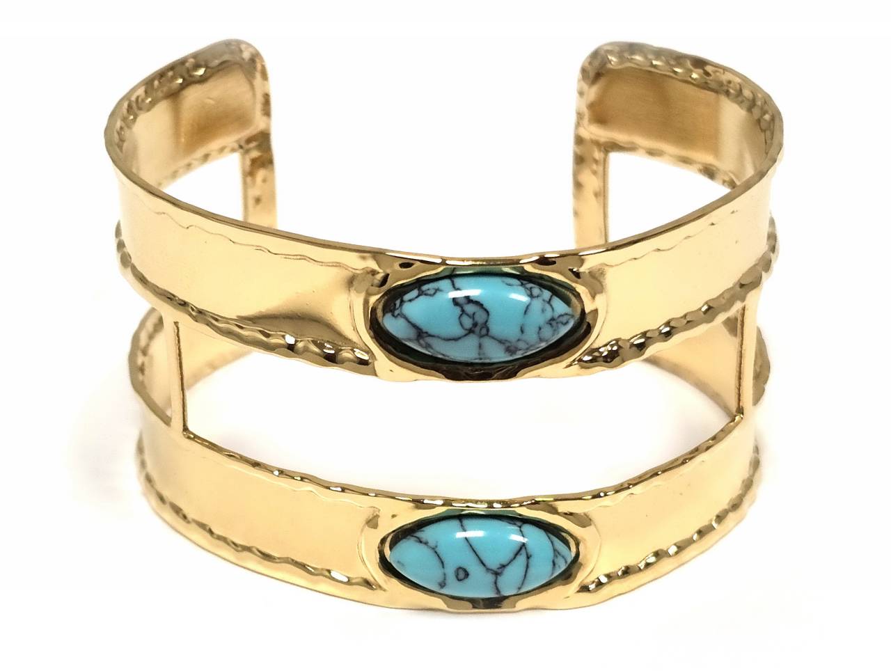 Βραχιόλι Πέτρα ατσάλι 316L, σταθερό με τυρκουάζ σε χρώμα Χρυσαφί