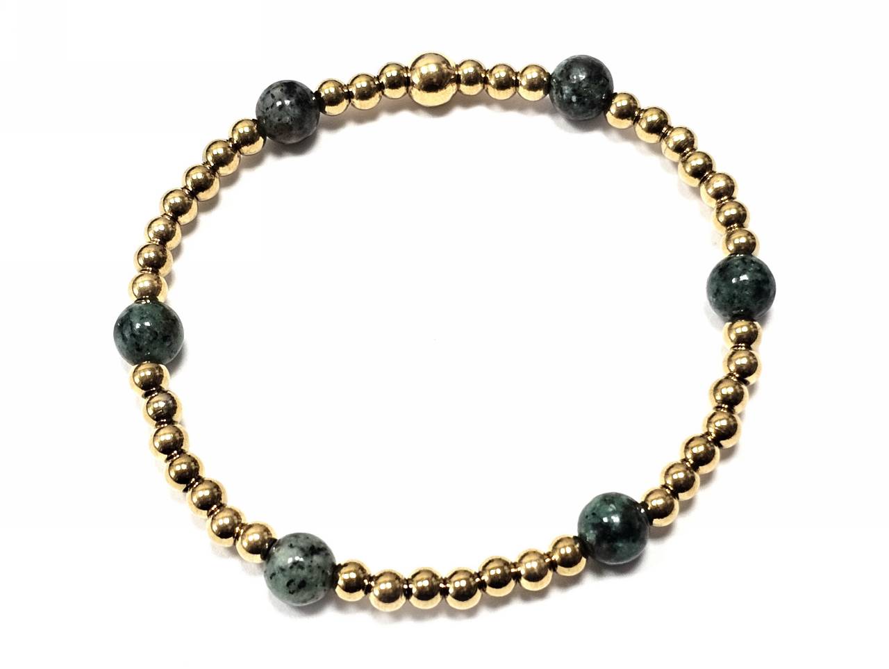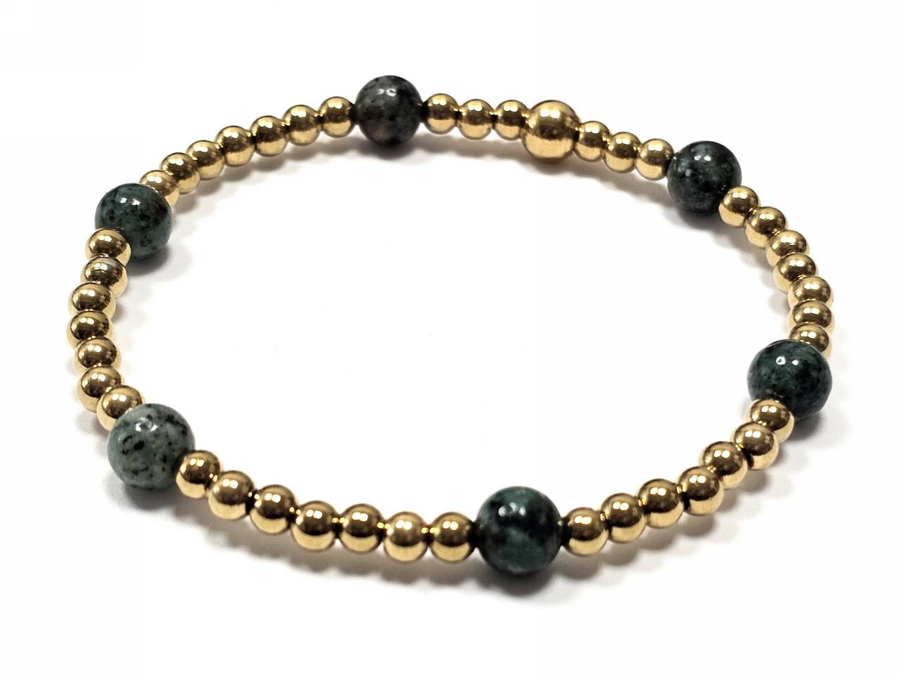 Βραχιόλι Πέτρα λάστιχο, 6# μαλαχίτης και ατσάλινα στοιχεία σε χρώμα Χρυσαφί