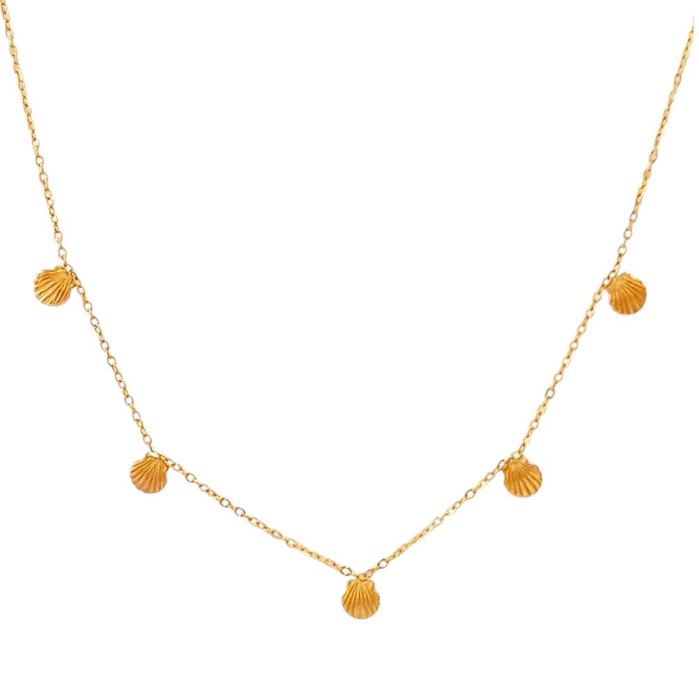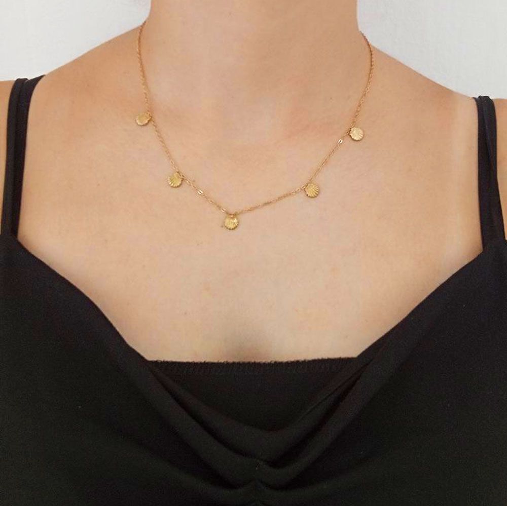 Λεπτό και κομψό κολιέ από ανοξείδωτο ατσάλι, διακοσμημένο με μικρά κοχυλάκια που χαρίζουν διακριτική καλοκαιρινή αύρα σε κάθε εμφάνιση. Ιδανικό για layering ή να φορεθεί μόνο του, προσθέτει μια ρομαντική και ανάλαφρη πινελιά στο ντύσιμο. Κατασκευασμένο από ανθεκτικό, υποαλλεργικό υλικό, με ρυθμιζόμενο μήκος 40+5εκ για άνετη εφαρμογή.