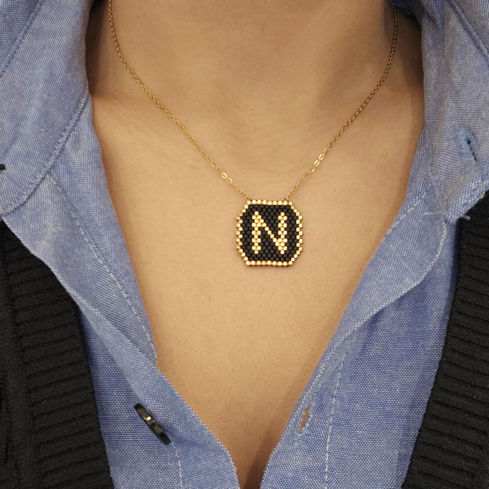 Ατσάλινο Μονόγραμμα ”N” Με Μαύρες Και Χρυσές Χάντρες