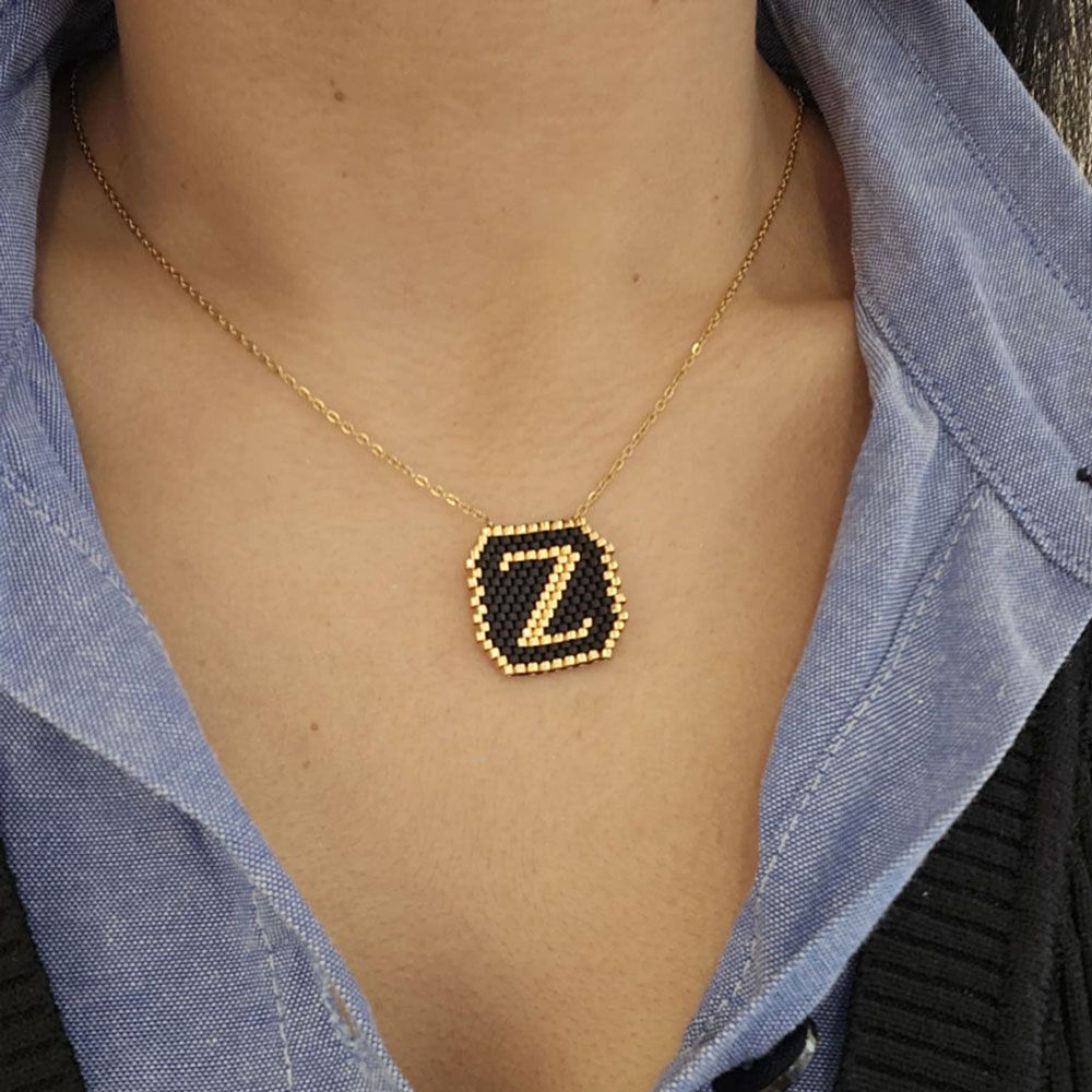 Ατσάλινο Μονόγραμμα ”Ζ” Με Μαύρες Και Χρυσές Χάντρες