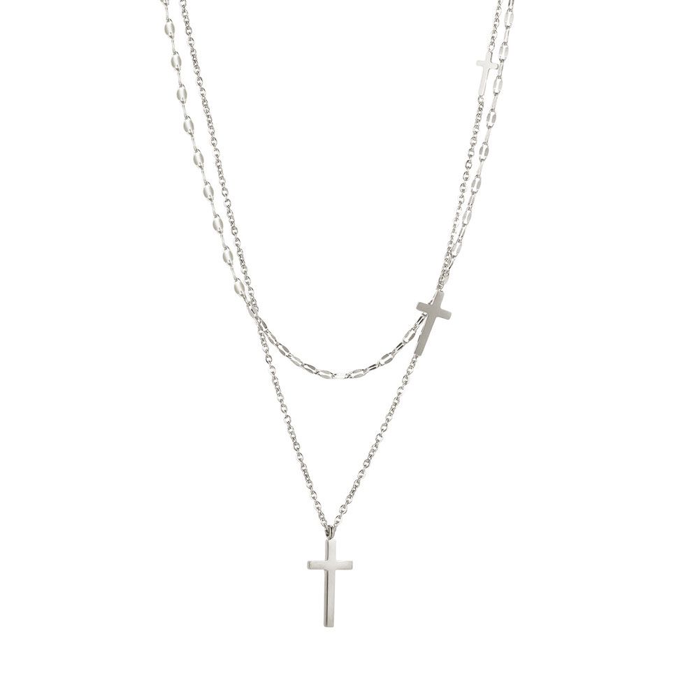 Ατσάλινο Κολιέ Με Σταυρούς - ΑσημίA070B