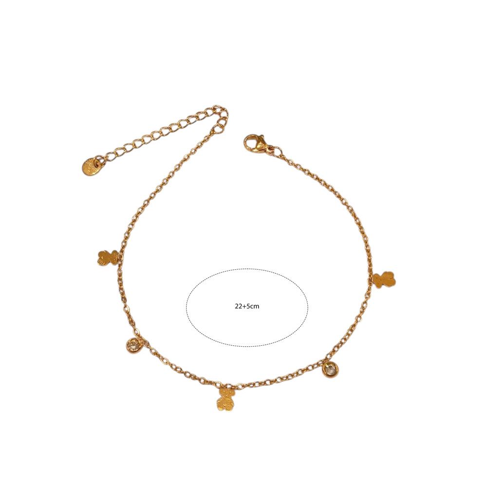 Γλυκό και παιχνιδιάρικο, αυτό το βραχιόλι ποδιού στολίζεται με μικρά μεταλλικά αρκουδάκια και λαμπερά ζιρκόνια, δημιουργώντας έναν χαρούμενο και νεανικό συνδυασμό. Ιδανικό για το καλοκαίρι, φοριέται με σανδάλια ή ξυπόλυτο και προσθέτει μια διακριτική δόση χαράς σε κάθε εμφάνιση. Διατίθεται σε χρυσό και ασημί, με ρυθμιζόμενο μήκος για τέλεια εφαρμογή.
