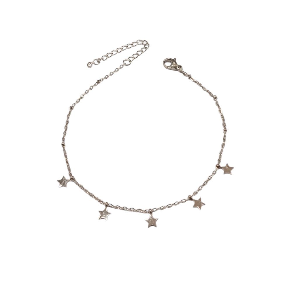Αέρινο και παιχνιδιάρικο, αυτό το βραχιόλι ποδιού με πέντε κρεμαστά αστεράκια χαρίζει λάμψη και στυλ σε κάθε καλοκαιρινή εμφάνιση. Η λεπτή αλυσίδα και το ρυθμιζόμενο μήκος το καθιστούν ιδανικό για κάθε αστράγαλο, ενώ διατίθεται σε χρυσό και ασημί για να ταιριάζει με όλα τα outfit. Φόρεσέ το ξυπόλυτη στην παραλία ή με σανδάλια για πιο κομψό αποτέλεσμα.