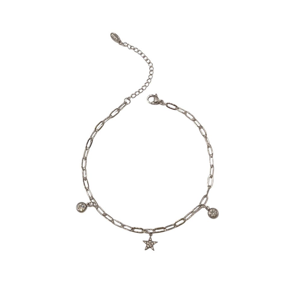 βραχιόλι ποδιού με αστέρι και ζιρκόν σε χρυσό & ασημί – Ασημί