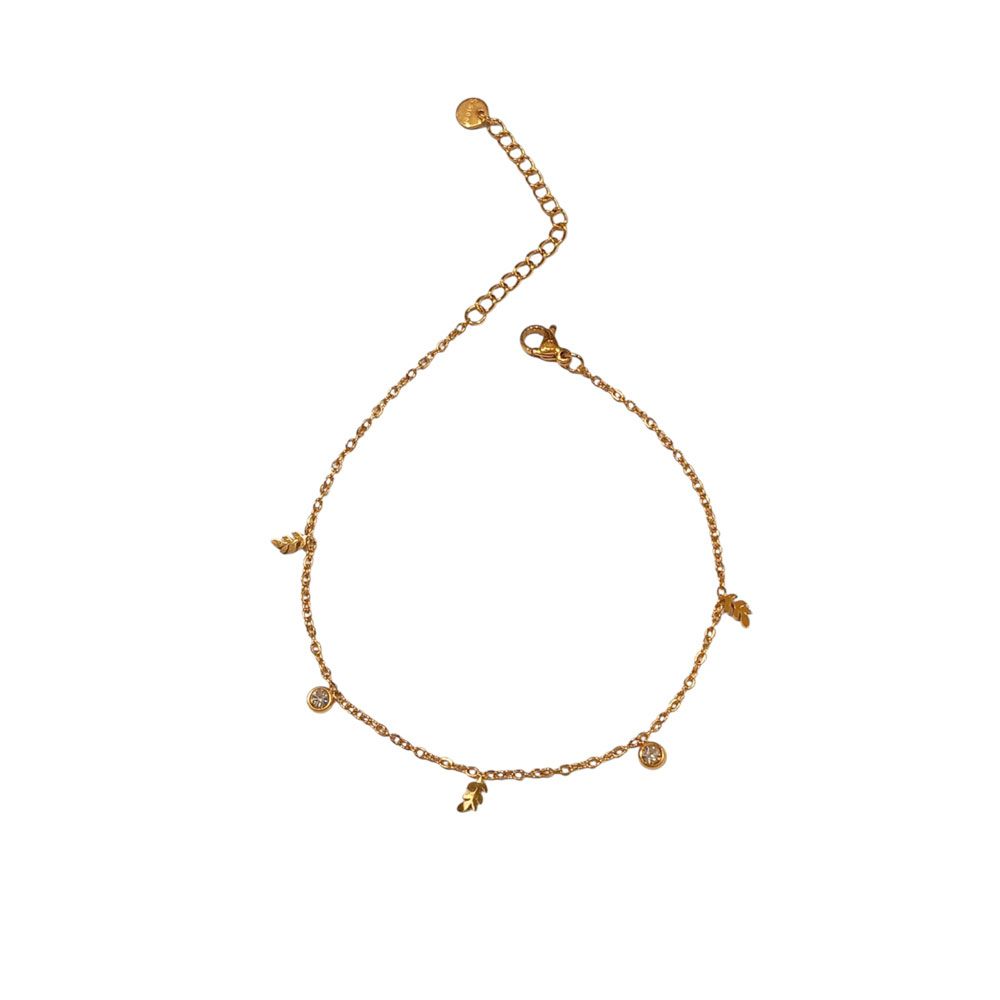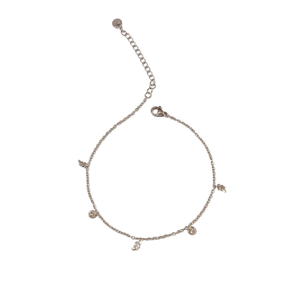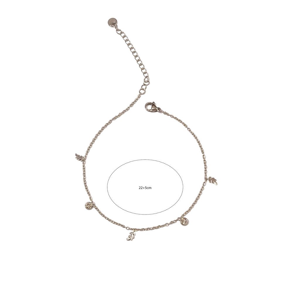 • βραχιόλι ποδιού με φύλλα και ζιρκόν σε χρυσό & ασημί - ΑσημίA12192