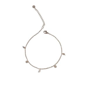 βραχιόλι ποδιού με φύλλα και ζιρκόν σε χρυσό & ασημί – Ασημί