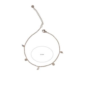 βραχιόλι ποδιού με φύλλα και ζιρκόν σε χρυσό & ασημί - ΑσημίA12192