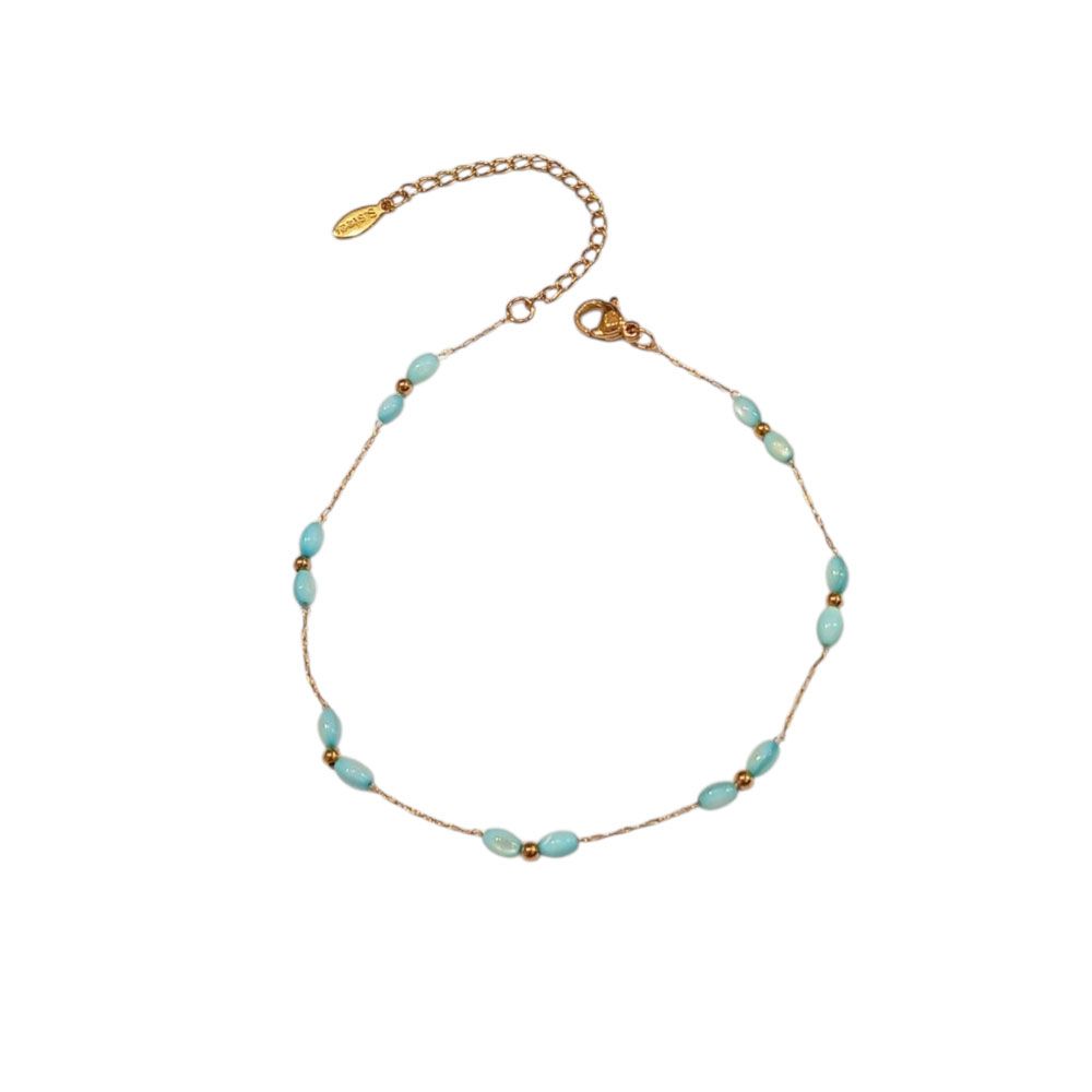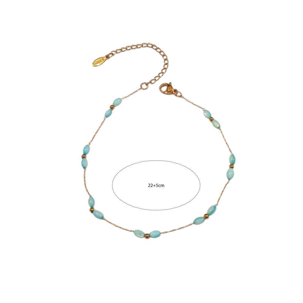 μινιμαλιστικό βραχιόλι ποδιού με λεπτή αλυσίδα και διακοσμητικές γαλάζιες χάντρες. διαθέτει ρυθμιζόμενο κούμπωμα και διατίθεται σε χρυσό και ασημί χρώμα. ιδανικό για καθημερινές εμφανίσεις, προσθέτει μία ανάλαφρη καλοκαιρινή πινελιά στο στιλ σας.