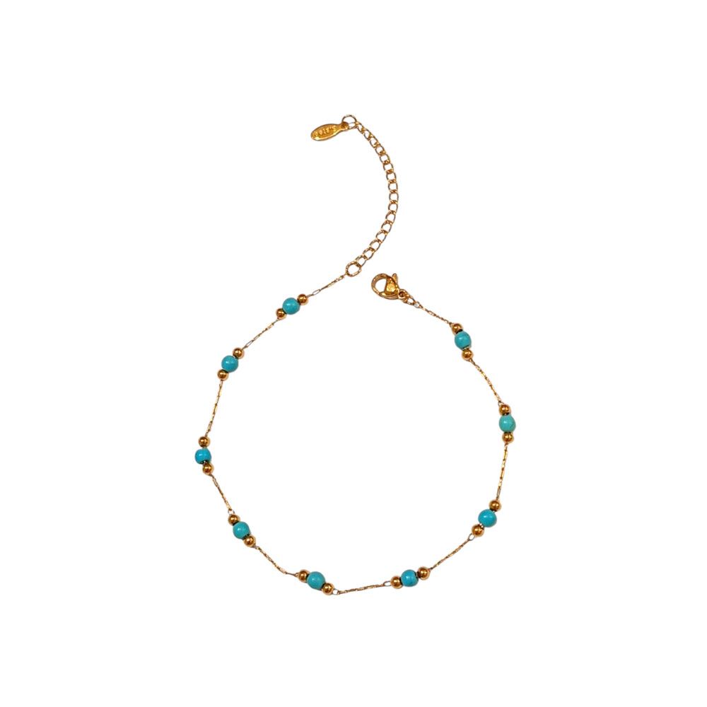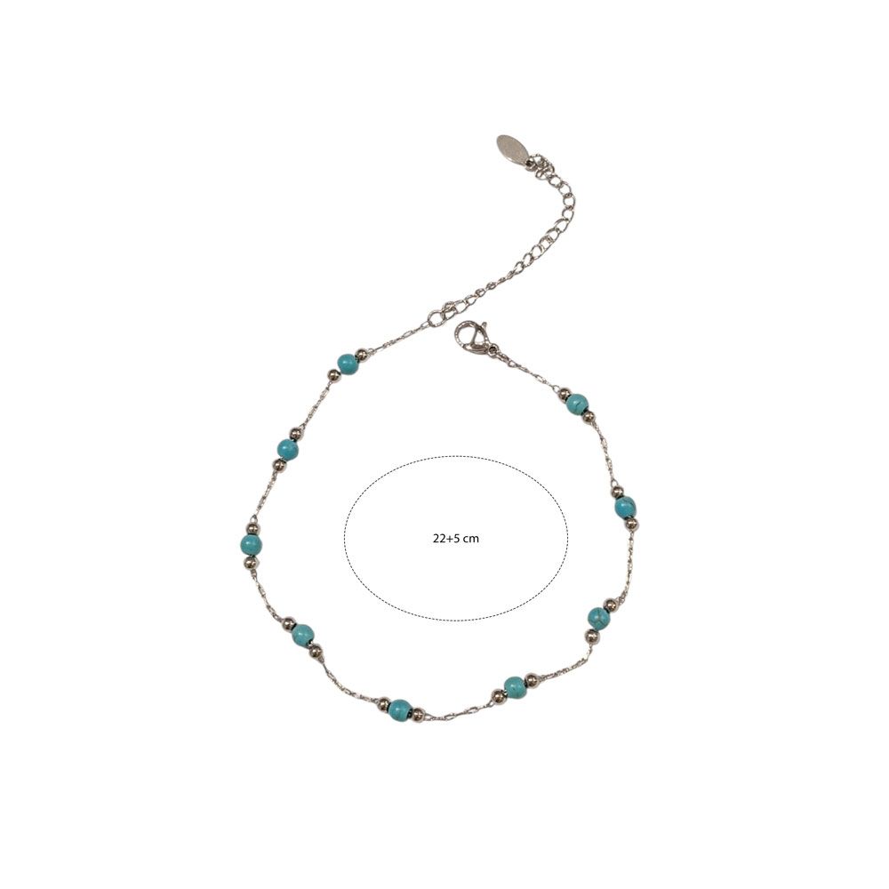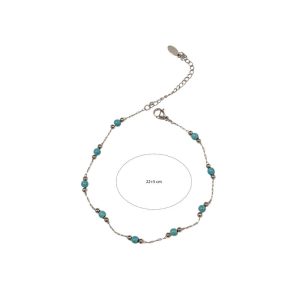 κομψό βραχιόλι ποδιού με διακριτικές τιρκουάζ χάντρες και μεταλλική αλυσίδα σε δύο αποχρώσεις: χρυσό και ασημί. διαθέτει ρυθμιζόμενο μήκος με προέκταση και κούμπωμα για σταθερή και άνετη εφαρμογή. ιδανικό για καθημερινές και καλοκαιρινές εμφανίσεις, προσθέτει χρώμα και λάμψη στο στυλ σου. συνδυάζεται εύκολα με σανδάλια ή ξυπόλυτες εμφανίσεις στην παραλία.
