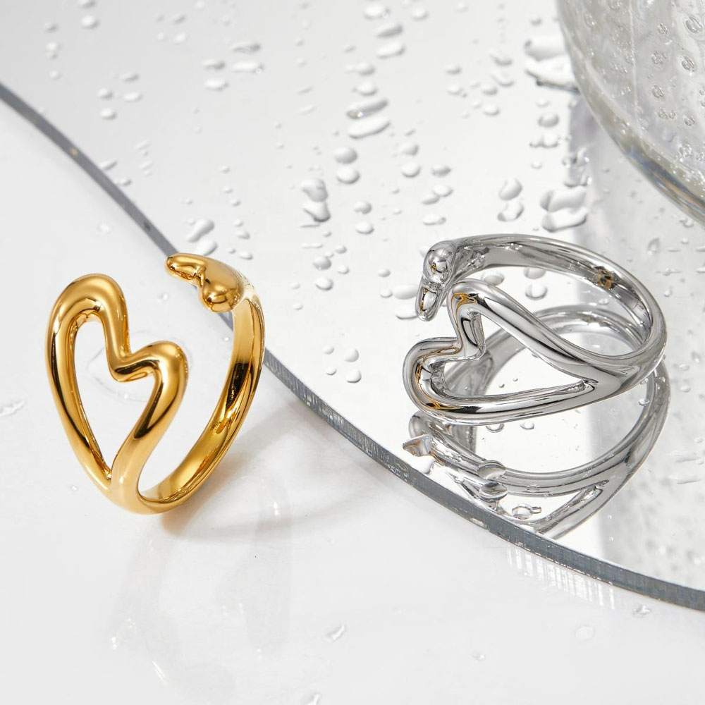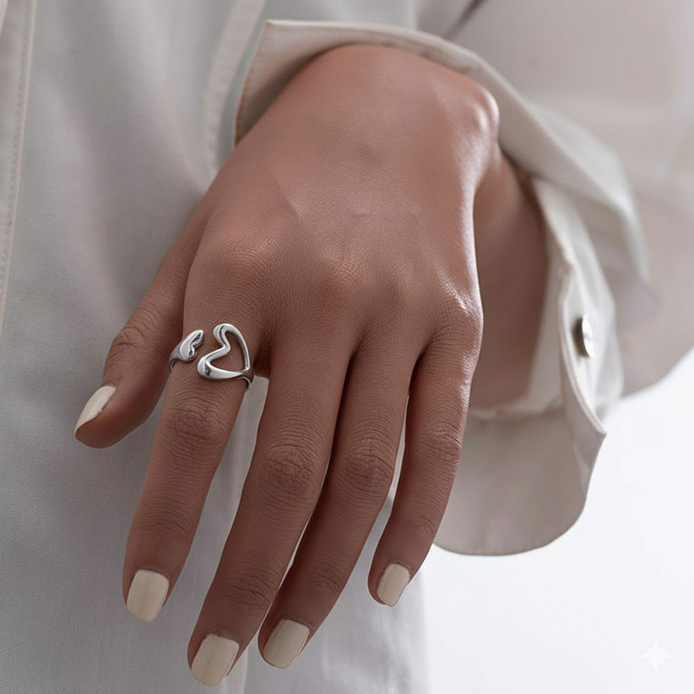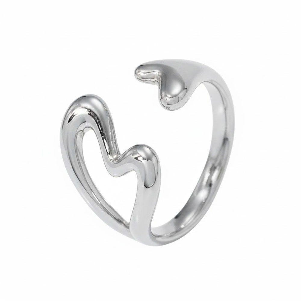 Μοντέρνο ατσάλινο δαχτυλίδι με ανοιχτό σχέδιο καρδιάς και ρευστές καμπύλες, που προσδίδουν κομψότητα και σύγχρονο χαρακτήρα. Ένα statement κόσμημα που φοριέται εύκολα καθημερινά και συνδυάζεται ιδανικά με minimal αλλά και πιο ιδιαίτερες εμφανίσεις.