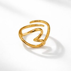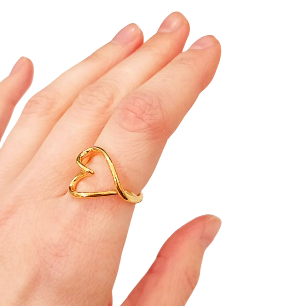 Μοντέρνο δαχτυλίδι σε σχήμα αφηρημένης καρδιάς, με ανοιχτό και ανάλαφρο design που αγκαλιάζει το δάχτυλο με κομψότητα. Ο γυαλιστερός χρυσός τόνος του το κάνει ιδανικό τόσο για καθημερινές εμφανίσεις όσο και για πιο ιδιαίτερες περιστάσεις.