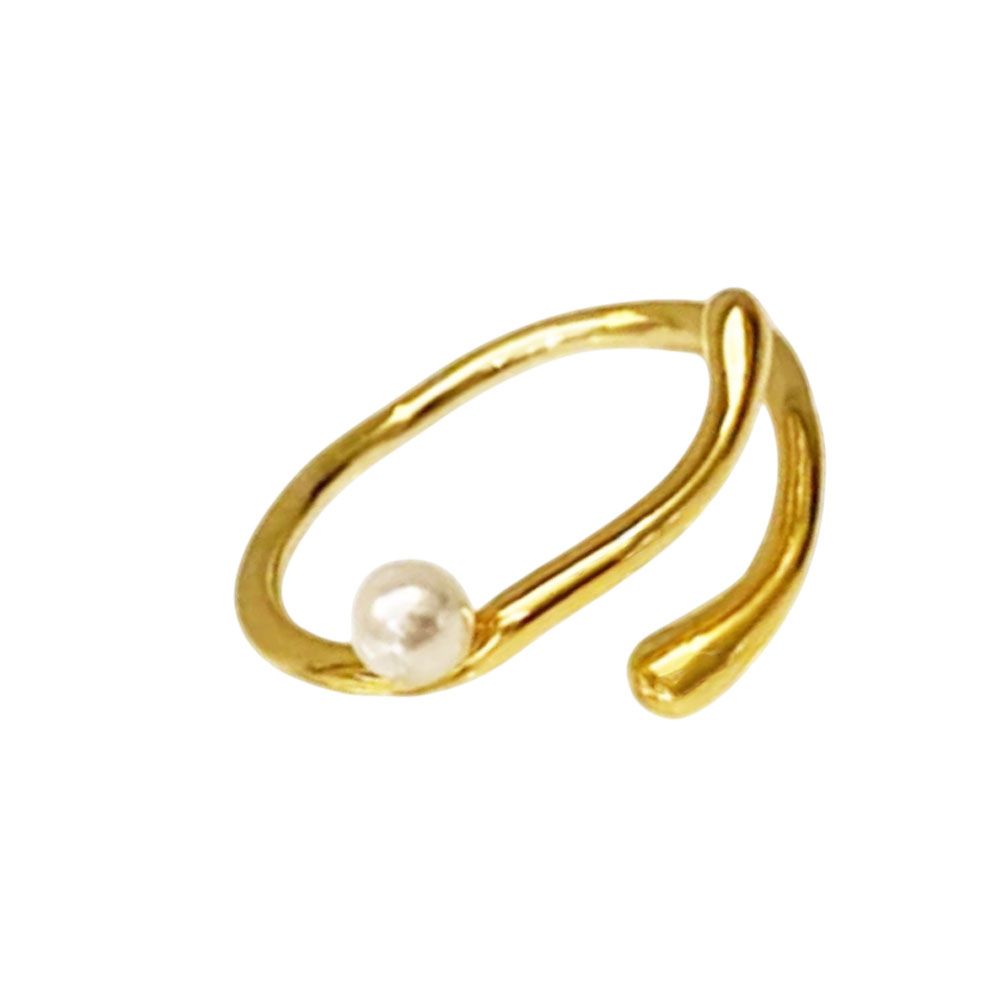 Γυναικείο Ατσάλινο Ρυθμιζόμενο Δαχτυλίδι Με Πέρλα 2.1εκ Πλάτος 10mm Ύψος