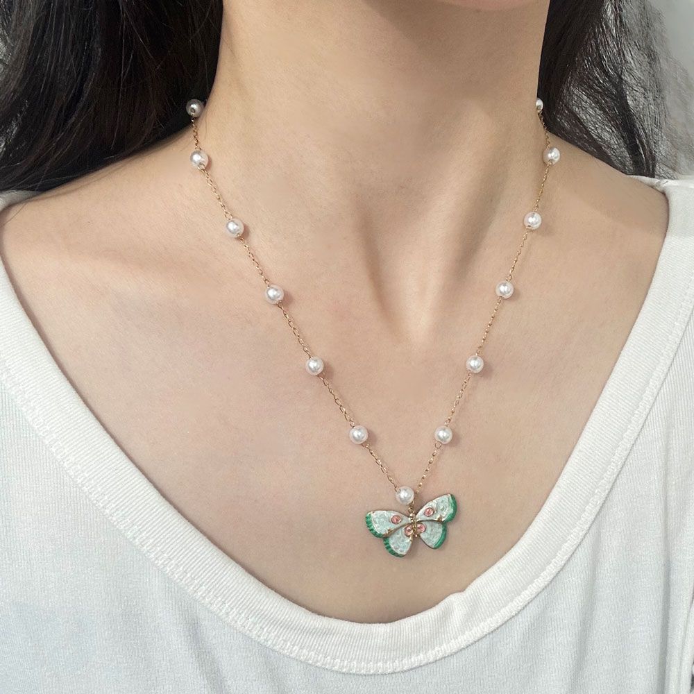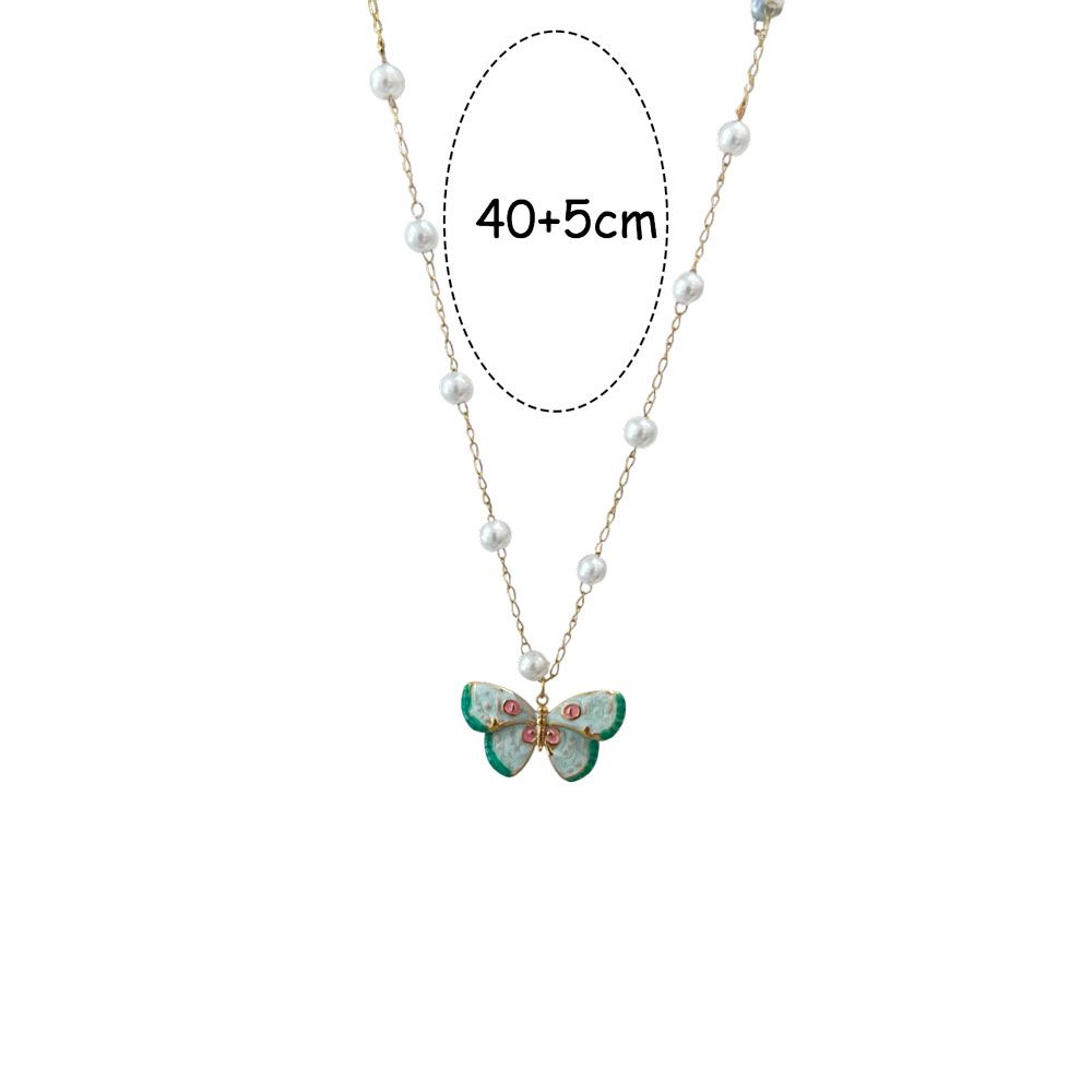 Εντυπωσιακό ατσάλινο κολιέ μήκους 40+5cm, διακοσμημένο με λευκά μαργαριτάρια και μοναδικό μενταγιόν σε σχήμα πεταλούδας με πράσινες και ροζ λεπτομέρειες. Ένα κομψό και ρομαντικό κόσμημα που συνδυάζει τη διαχρονική φινέτσα με μια παιχνιδιάρικη πινελιά, ιδανικό για να απογειώσει κάθε σας εμφάνιση. Κατάλληλο για καθημερινή χρήση αλλά και για ιδιαίτερες περιστάσεις. Δεν μαυρίζει, δεν προκαλεί αλλεργίες.