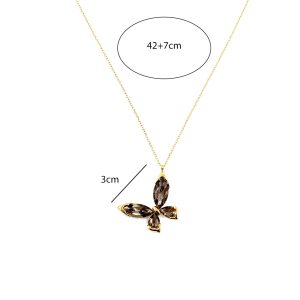 Ατσάλινο Κολιέ Πεταλούδα με Κρυστάλλινες Σκούρες Πέτρες Χρυσό Χρώμα