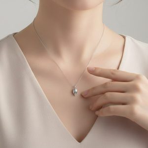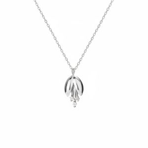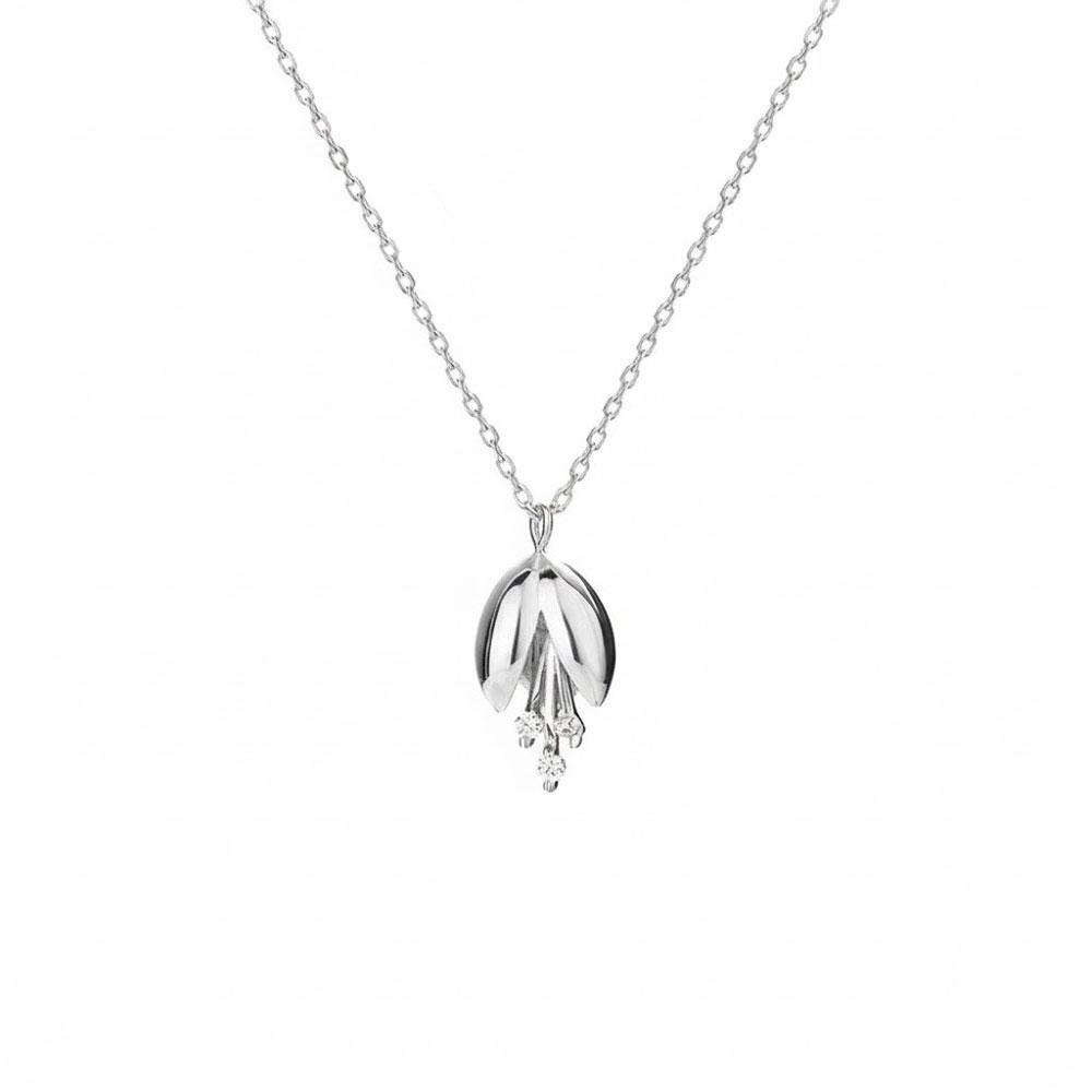 Κολιέ Τουλίπα με Κρεμαστό Στοιχείο από Στρας Ατσάλι Ασημί Χρώμα