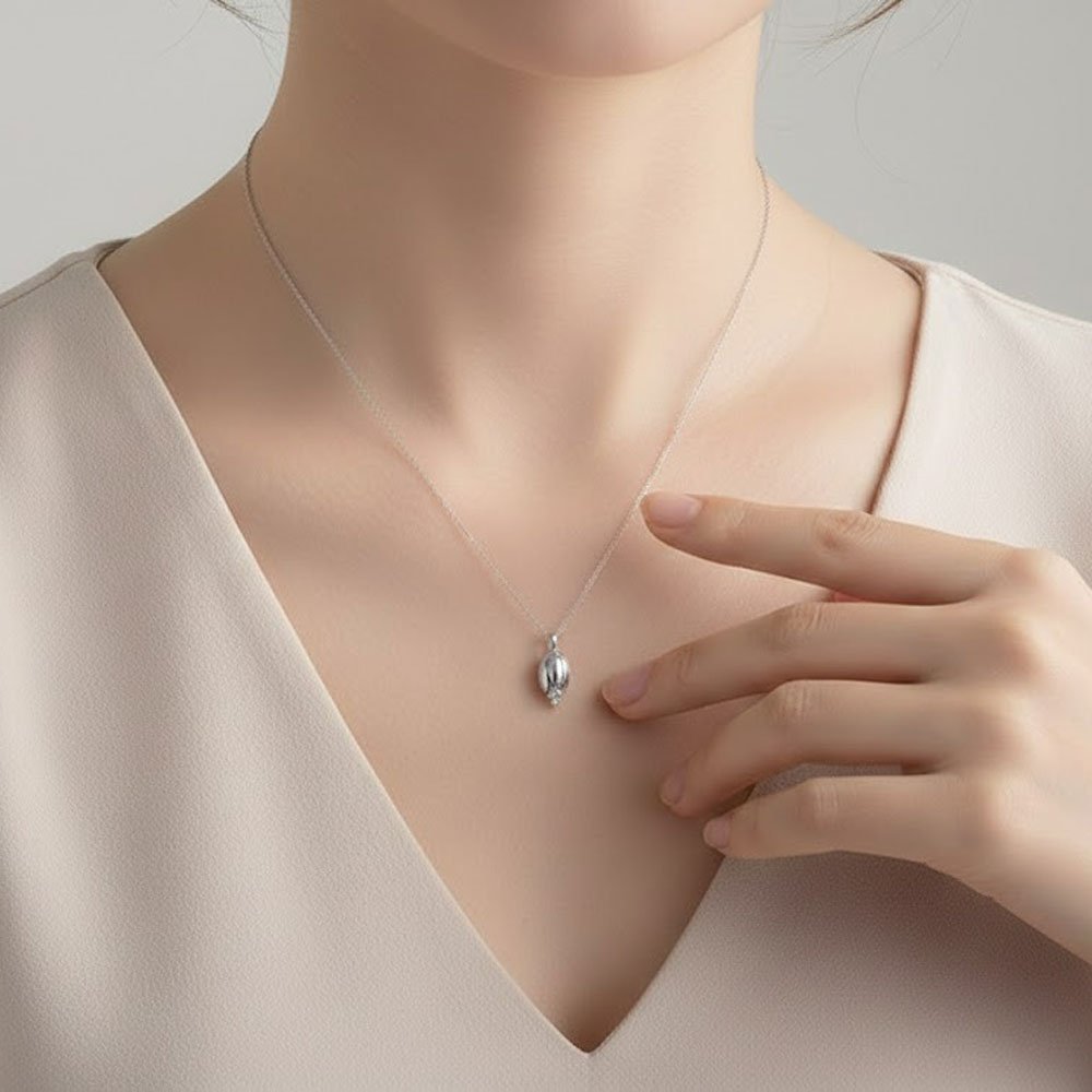 Κομψό κολιέ από ανοξείδωτο ατσάλι σε ασημί απόχρωση, με διακριτικό μοτίβο τουλίπας και κρεμαστό στοιχείο διακοσμημένο με λαμπερά στρας. Το minimal αλλά ιδιαίτερο σχέδιο προσθέτει μία ρομαντική πινελιά και φοριέται εύκολα από το πρωί έως το βράδυ. Διαθέτει ρυθμιζόμενη αλυσίδα για άνετη εφαρμογή και είναι ιδανικό για καθημερινές αλλά και πιο elegant εμφανίσεις.