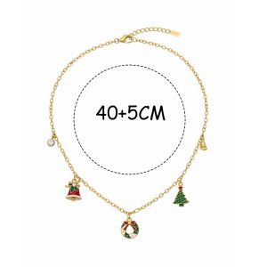Εντυπωσιακό ατσάλινο κολιέ με γιορτινά charms – καμπάνα, στεφάνι και χριστουγεννιάτικο δέντρο. Ένα κομψό και χαρούμενο κόσμημα που θα ολοκληρώσει τέλεια τις εορταστικές σας εμφανίσεις. Κατασκευασμένο από ανθεκτικό ανοξείδωτο ατσάλι με σμάλτο σε κόκκινες, πράσινες και λευκές αποχρώσεις και χρυσή βάση που χαρίζει λάμψη και πολυτέλεια.