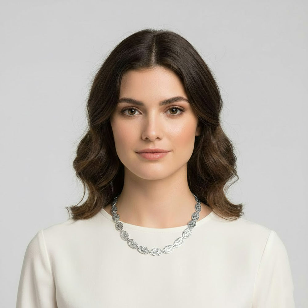 Εντυπωσιακό κολιέ από ανοξείδωτο ατσάλι , διακοσμημένο με ανάγλυφες οβάλ λεπτομέρειες που χαρίζουν μοναδικό χαρακτήρα και διαχρονική κομψότητα. Ο ιδιαίτερος σχεδιασμός του το καθιστά ιδανική επιλογή τόσο για καθημερινές εμφανίσεις όσο και για πιο κομψές, βραδινές εξόδους. Ανθεκτικό στη φθορά, άνετο στην εφαρμογή και εύκολο στον συνδυασμό με κάθε στυλ, προσθέτει μια elegant πινελιά σε κάθε look.