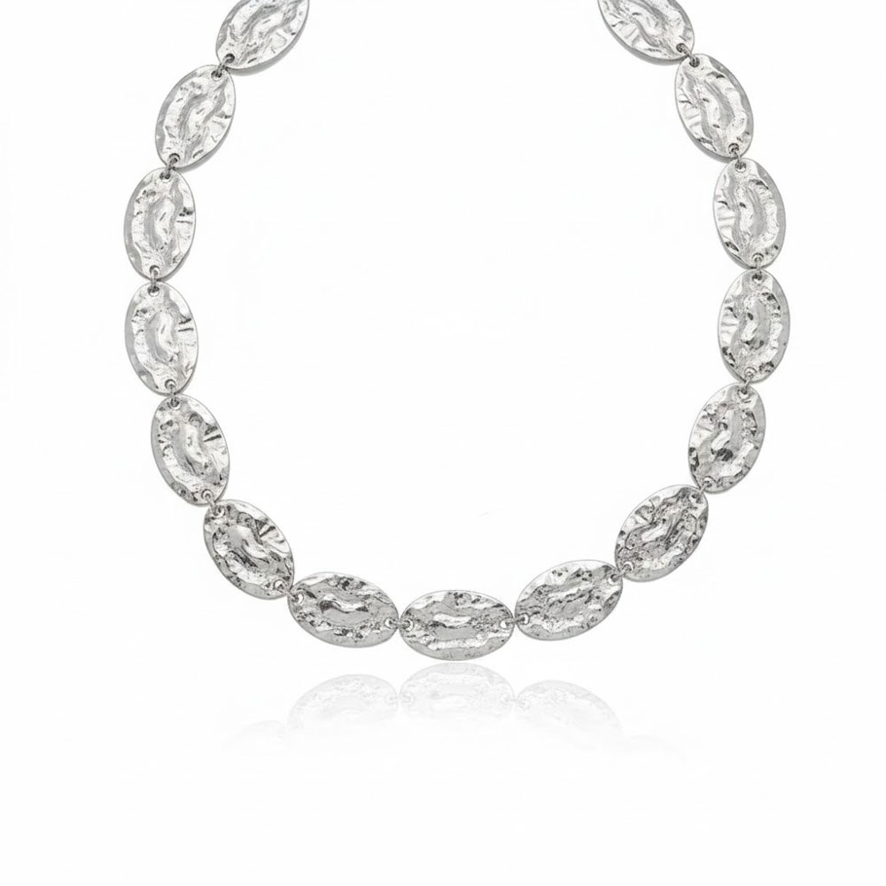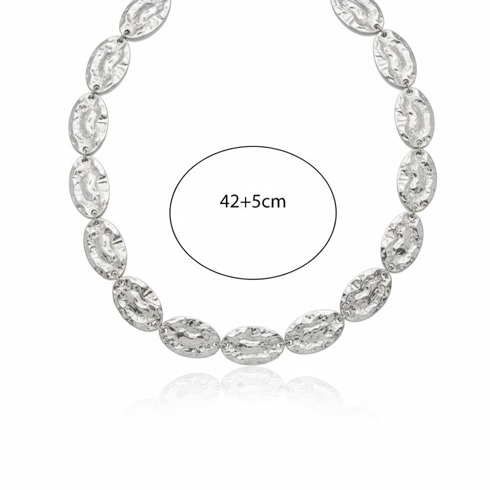 Ατσάλινο Κολιέ με Ανάγλυφες Οβάλ Λεπτομέρειες Ασημί Χρώμα