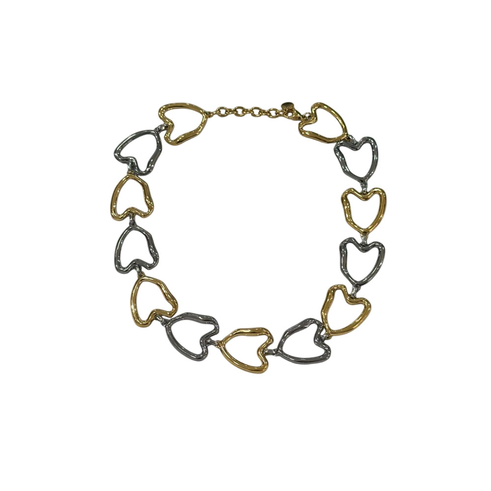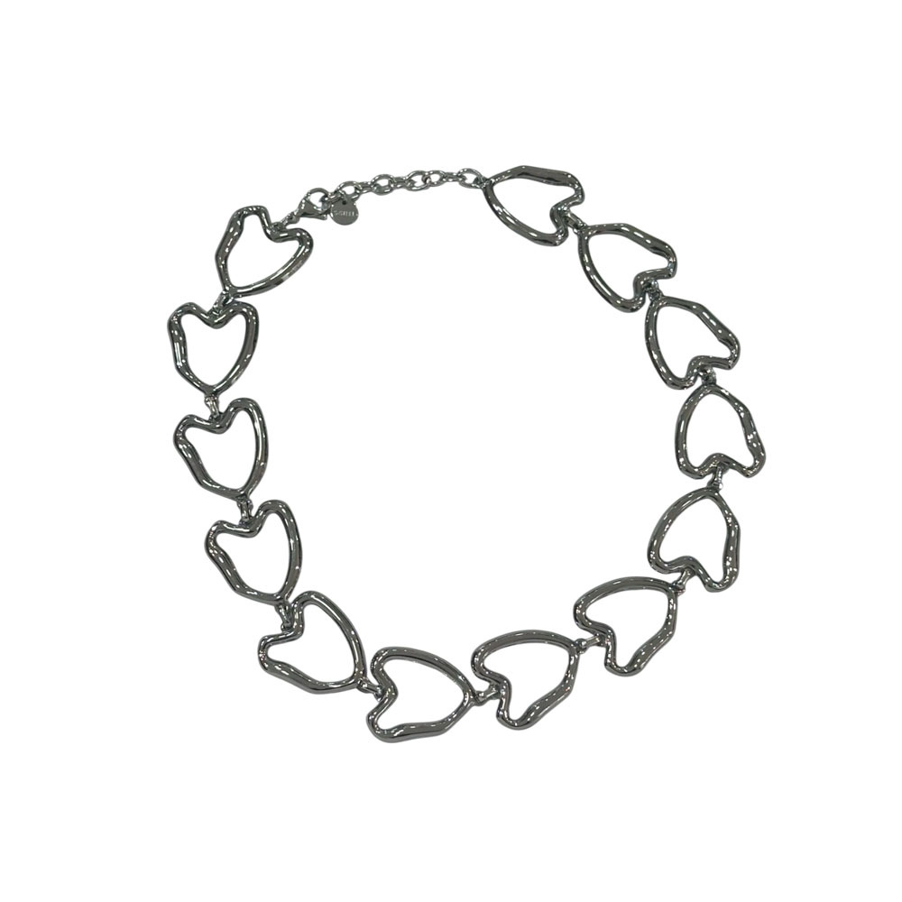 Μοντέρνο ατσάλινο κολιέ με μοναδικά, καμπυλωτά γεωμετρικά στοιχεία που σχηματίζουν ένα εντυπωσιακό σχέδιο. Ιδανικό για να χαρίσει στυλ και λάμψη σε κάθε εμφάνιση — από casual μέχρι πιο elegant.Μήκος: 40 + 5 cm