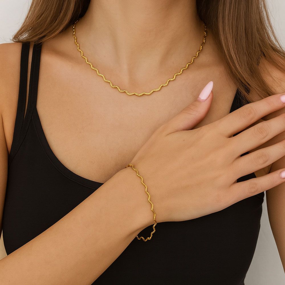 Ατσάλινο κολιέ με κυματιστή αλυσίδα – Χρυσό
