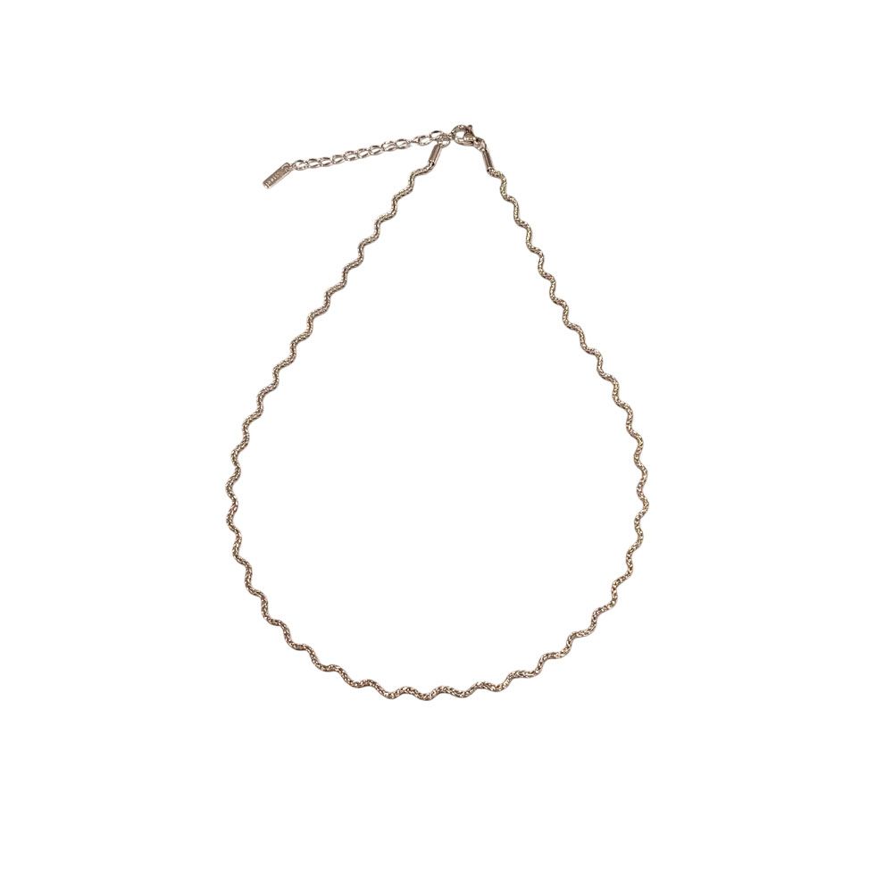 Ατσάλινο κολιέ με κυματιστή αλυσίδα σε χρυσή ή ασημί απόχρωση. Ένα minimal αλλά εντυπωσιακό σχέδιο που ξεχωρίζει για τη μοναδική του υφή, ιδανικό για καθημερινές εμφανίσεις αλλά και για layering με άλλα κοσμήματα. Μήκος αλυσίδας 40+6cm για άνετη εφαρμογή.