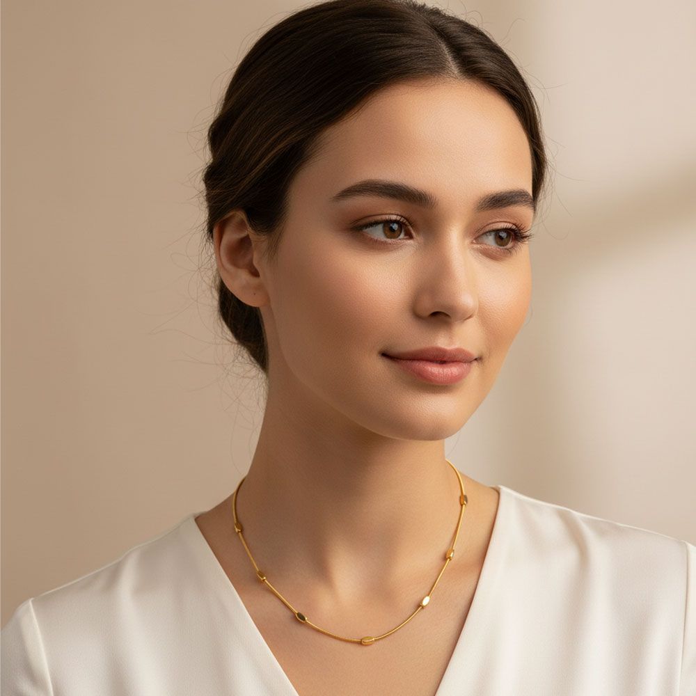 Ατσάλινο Κολιέ με Οβάλ Λεπτομέρειες – Χρυσό