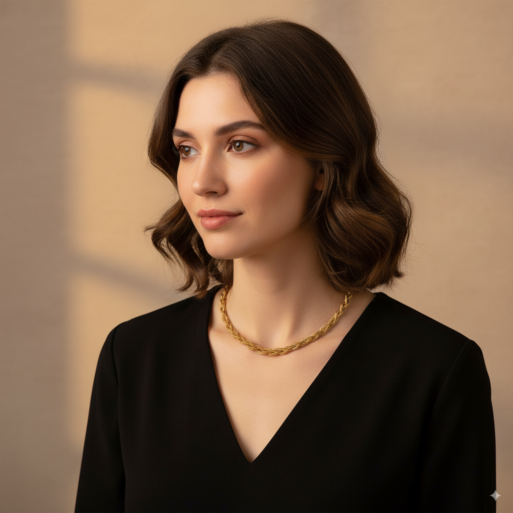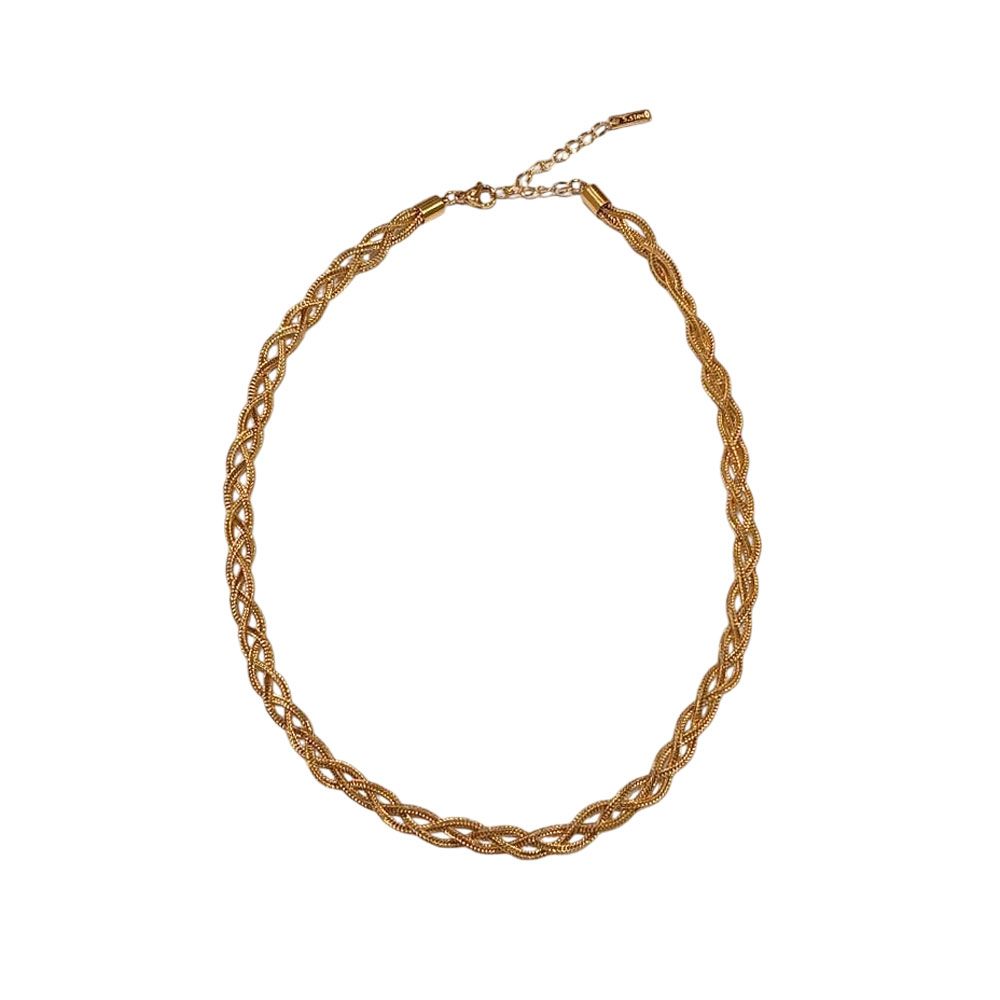 Ατσάλινο κολιέ με πλεγμένη αλυσίδα – Χρυσό