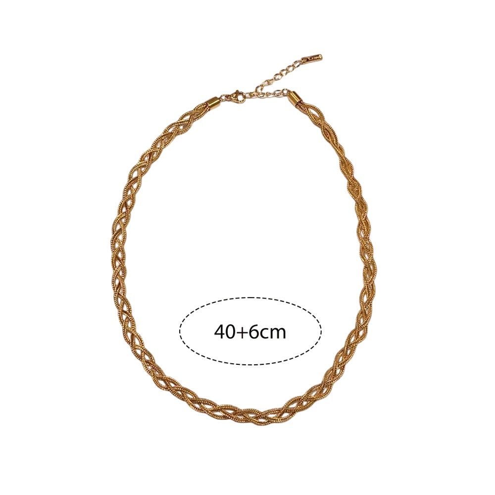 Ατσάλινο κολιέ με εντυπωσιακή πλεγμένη αλυσίδα σε χρυσό ή ασημί χρώμα. Ένα κομψό και διαχρονικό σχέδιο που χαρίζει στυλ και λάμψη σε κάθε εμφάνιση. Μήκος αλυσίδας 40+6cm για προσαρμοζόμενη εφαρμογή.