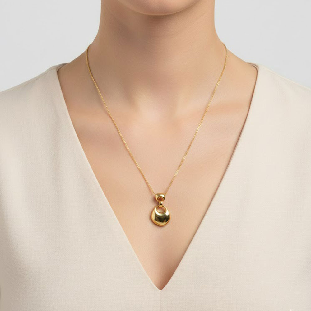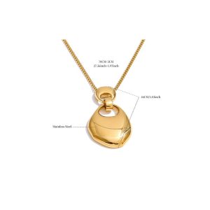 Κομψό ατσάλινο κολιέ σε χρυσό χρώμα, με ιδιαίτερο ασύμμετρο οβάλ μοτίφ που ξεχωρίζει για τη μοντέρνα και γλυπτική του αισθητική. Το γυαλιστερό φινίρισμα χαρίζει διακριτική λάμψη, ενώ το μακρύ μήκος της αλυσίδας το καθιστά ιδανικό για layered εμφανίσεις ή για να φορεθεί μόνο του ως statement κόσμημα. Ανθεκτικό, άνετο και εύκολο στο καθημερινό styling.