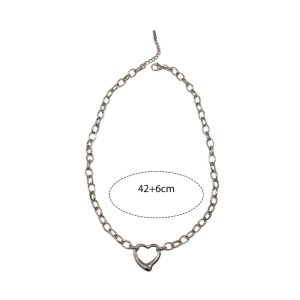 Ατσάλινο κολιέ με εντυπωσιακή χοντρή αλυσίδα και κεντρικό μοτίφ σε σχήμα καρδιάς. Ένα bold και μοντέρνο σχέδιο που αναδεικνύει κάθε εμφάνιση, ιδανικό για layering ή για statement look. Μήκος αλυσίδας 42+6cm για προσαρμοζόμενη εφαρμογή.