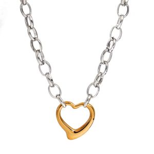 Ατσάλινο κολιέ με χοντρή αλυσίδα και καρδιά – Χρυσό