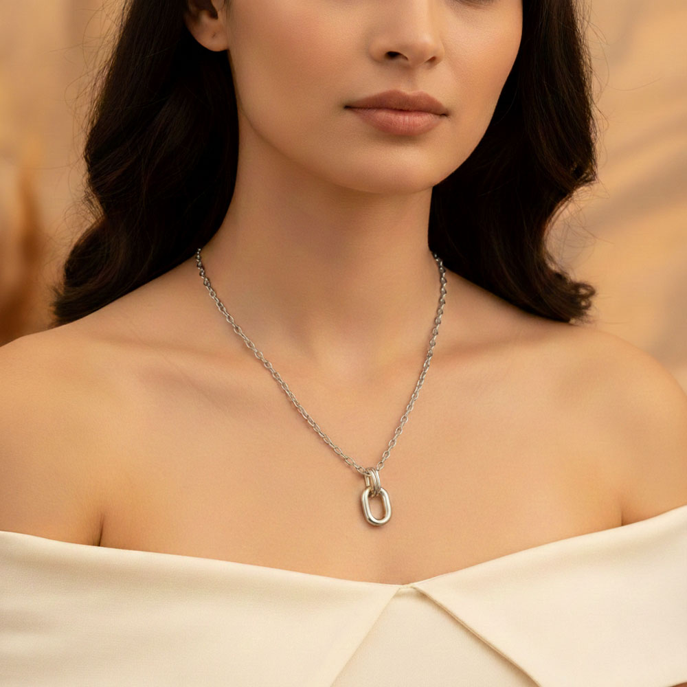 Minimal κολιέ από ανοξείδωτο ατσάλι, διακοσμημένο με κομψό οβάλ κρίκο που προσδίδει σύγχρονη και διαχρονική αισθητική. Ο απλός και καθαρός σχεδιασμός του το καθιστά ιδανικό για καθημερινή χρήση αλλά και για elegant εμφανίσεις, φορεμένο μόνο του ή σε layering με άλλα κολιέ. Ανθεκτικό, ελαφρύ και άνετο στην εφαρμογή, αποτελεί ένα ευέλικτο κόσμημα που ταιριάζει σε κάθε στυλ.