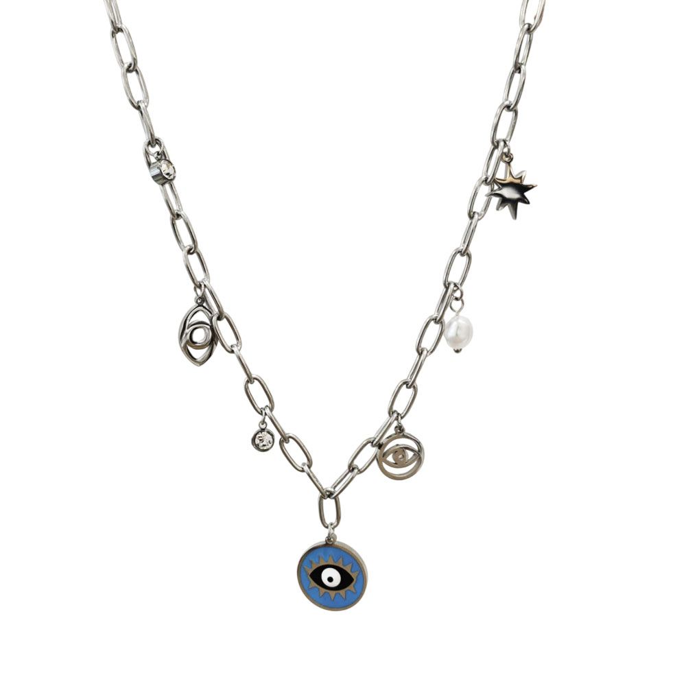 Ατσάλινο Κολιέ Ματάκι Με Κρεμαστά Στοιχεία - ΧρυσόX0098A