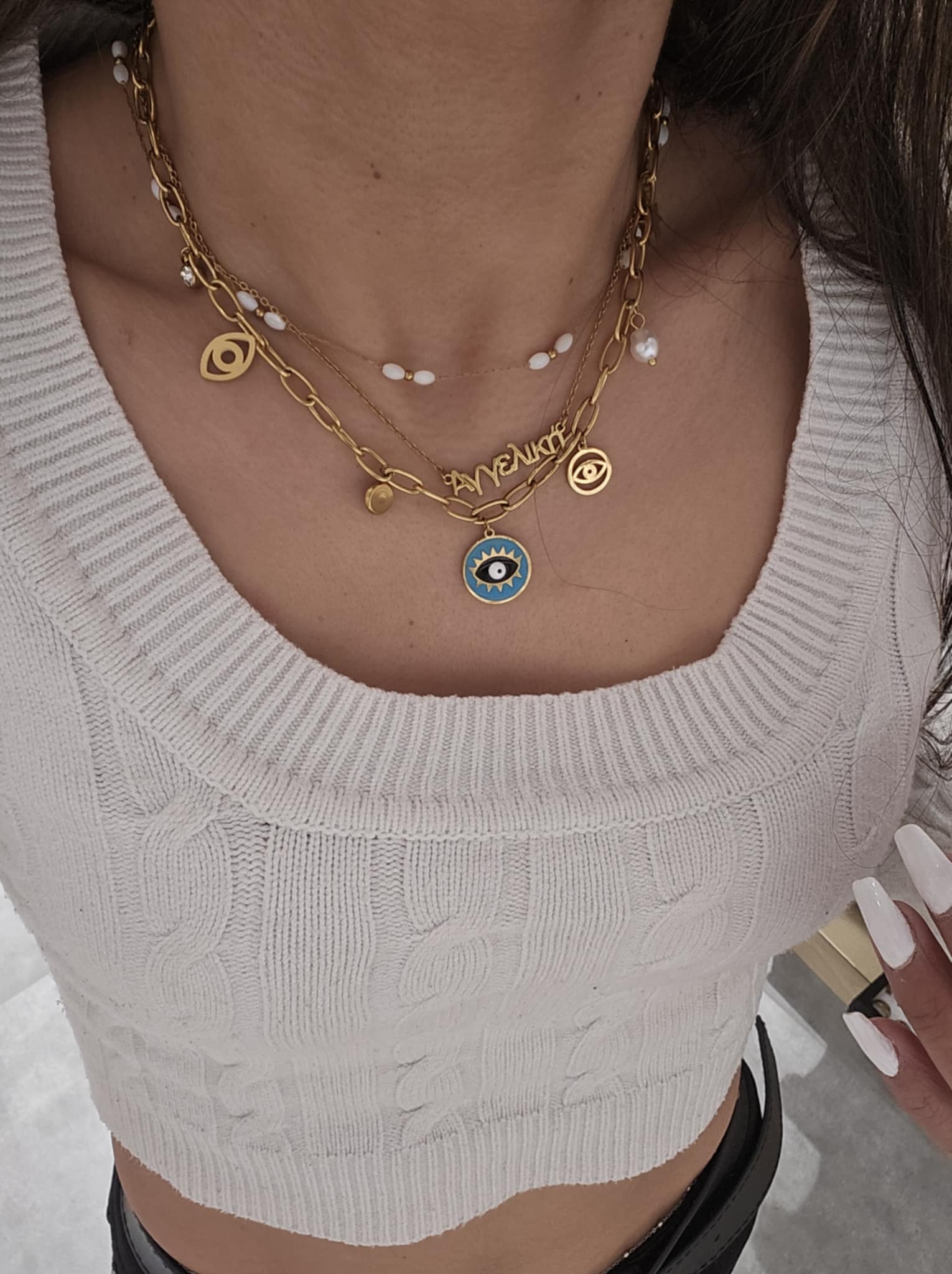 Ατσάλινο Κολιέ Ματάκι Με Κρεμαστά Στοιχεία – Χρυσό