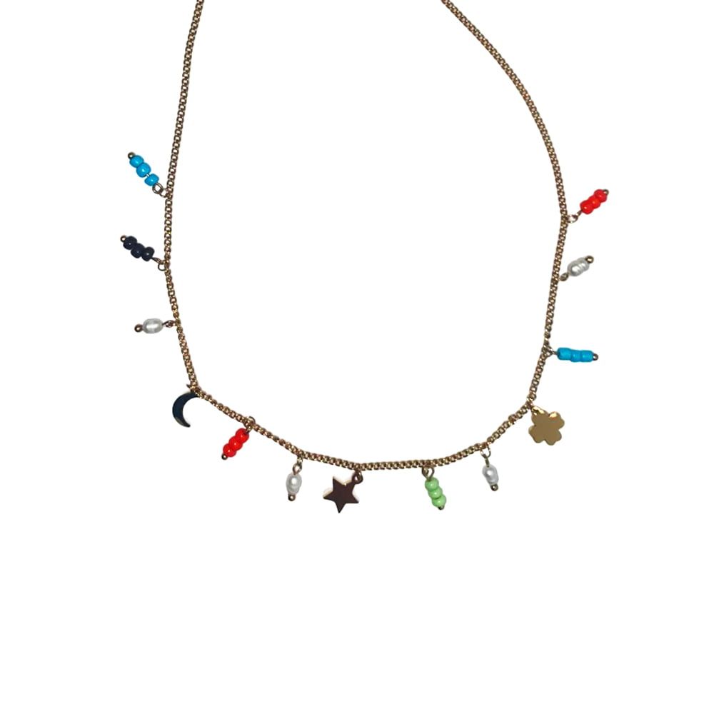 • Ατσάλινο Κολιέ Με Χρωματιστές Χάντρες - ΧρυσόA3168