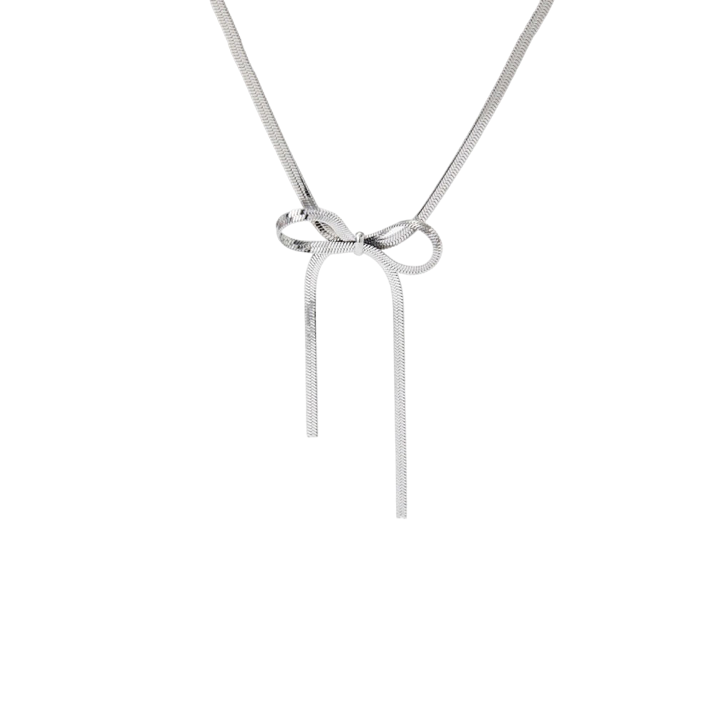 • Ατσάλινο Κολιέ Με Φιογκάκι - ΑσημίA3106