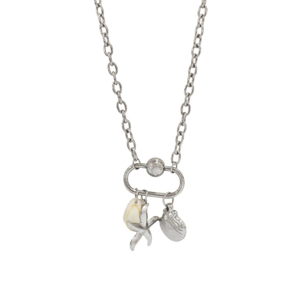Κολιέ από ατσάλι, ιδανικό για κάθε Καλοκαιρινή περίσταση & κάθε ώρα της ημέρας. Διαθέτει Κούμπωμα Ασφαλείας Με Μπίλια Η Οποία Βρίσκεται Στον Ορθογώνιο Κρίκο Οπου Βρίσκονται Τα Στοιχεία Μπορείτε Να Προσθέσετε Η να Αφαιρέσετε Οποιοδήποτε Στοιχείο. Ατσάλινη Αλυσίδα Μήκος Αλυσίδας: 44.5 εκ.