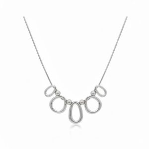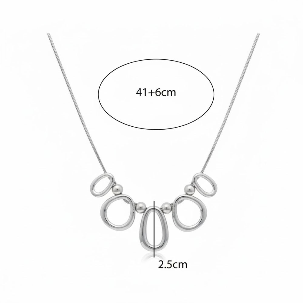 Ατσάλινο Κολιέ με Οβάλ και Κυκλικά Στοιχεία Ασημί Χρώμα