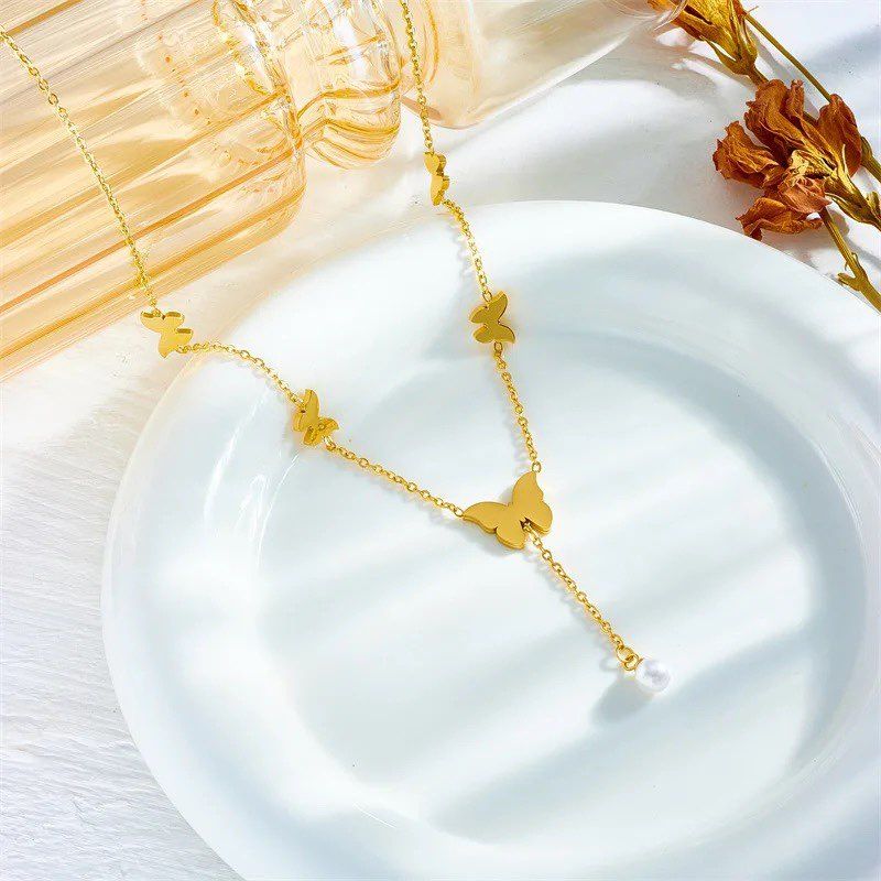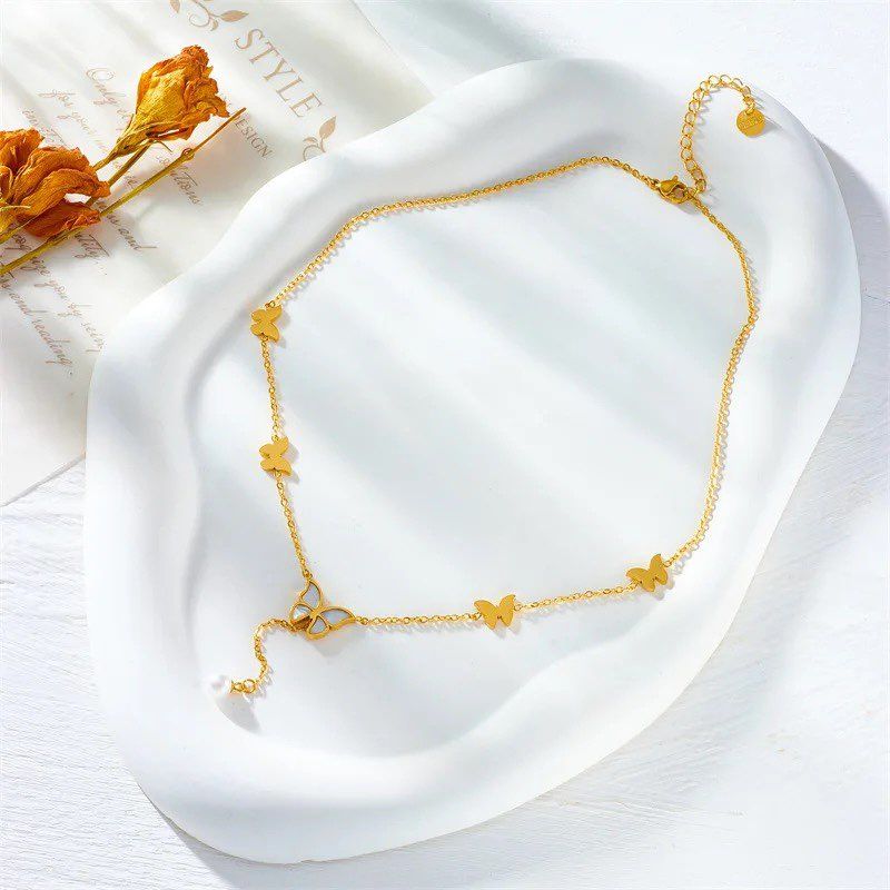 Ατσάλινο Κολιέ Με Πεταλούδες – Χρυσό
