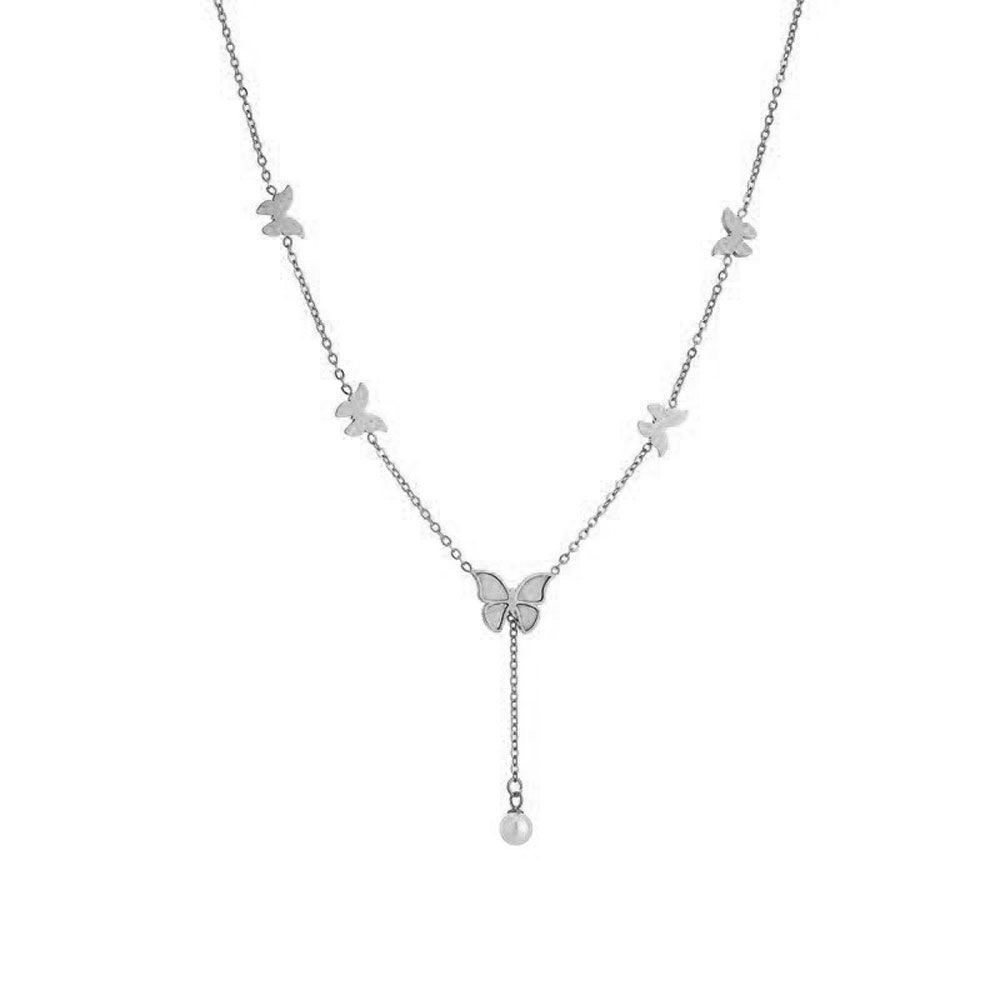 • Ατσάλινο Κολιέ Με Πεταλούδες - ΑσημίA3149