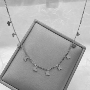 Ατσάλινο Κολιέ Mε Πεταλούδες - ΧρυσόA3167
