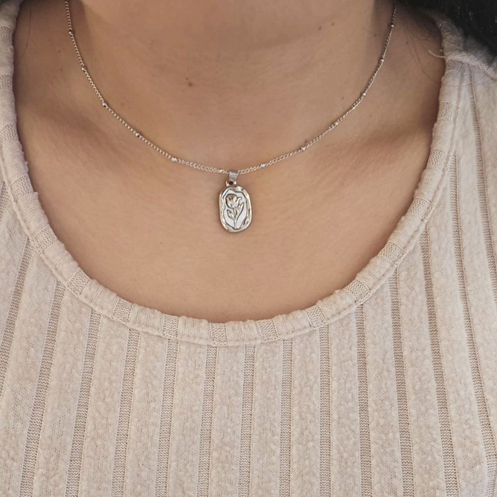 Κομψό Vintage Κολιέ Mε Τριαντάφυλλο Και Πέτρα Φίλντισι Διαθέτει αυξομείωση και μπορείτε να το προσαρμόσετε στο ύψος που επιθυμείτε. Μήκος Αλυσίδας:40.4.οεκ.