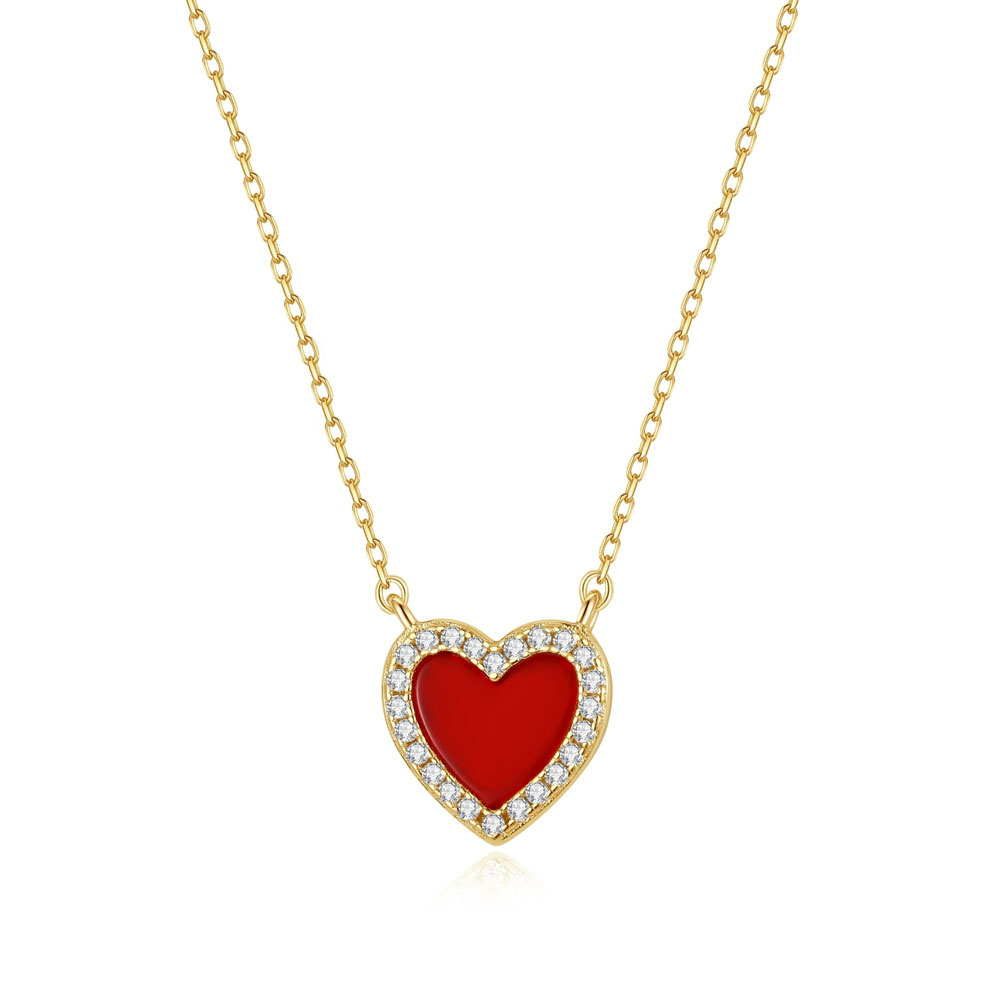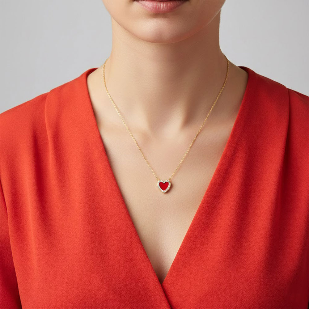 Κομψό ατσάλινο κολιέ με μενταγιόν σε σχήμα καρδιάς, διακοσμημένο με έντονο κόκκινο σμάλτο και λαμπερά στρασάκια περιμετρικά. Ένα διαχρονικό και ρομαντικό κόσμημα που φοριέται εύκολα από το πρωί έως το βράδυ, μόνο του ή σε layering με άλλα κολιέ. Κατασκευασμένο από ανοξείδωτο ατσάλι, ανθεκτικό και ιδανικό για καθημερινή χρήση χωρίς να μαυρίζει.