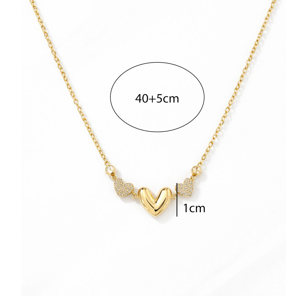 Κολιέ Τριπλή Καρδιά με Στρας από Ατσάλι Χρυσό Χρώμα